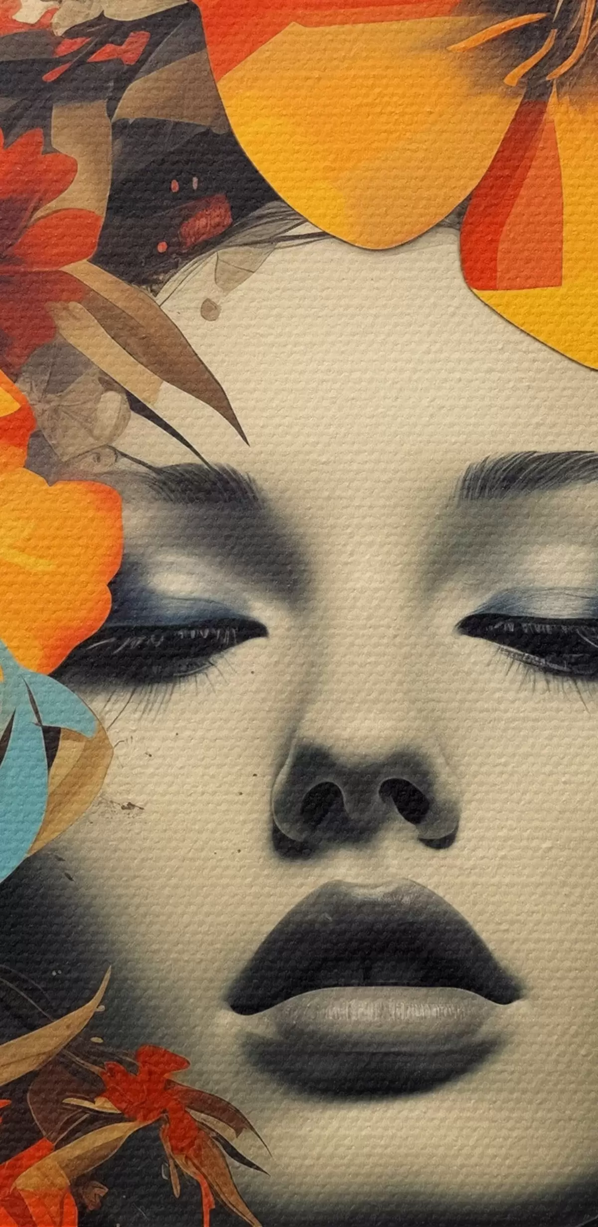Runde Wandbilder Collage Stil Mädchen Porträt mit Blumen r41271