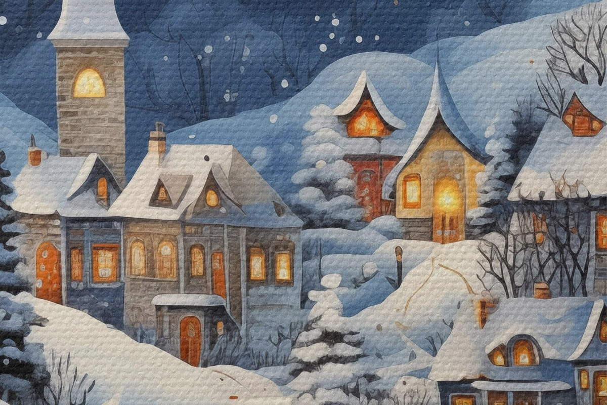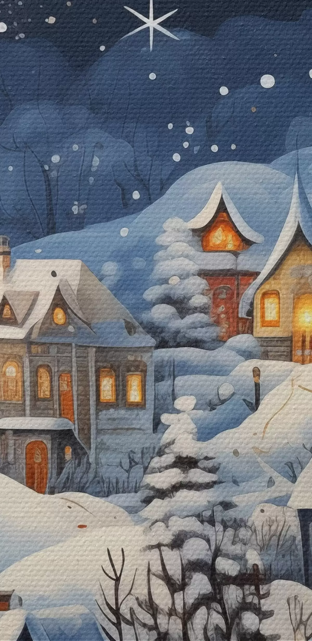 Runde Wandbilder Winterlandschaft mit schneebedeckten Landhäusern vor dem Hintergrund des nächtlichen Sternenhimmels Nr r41275