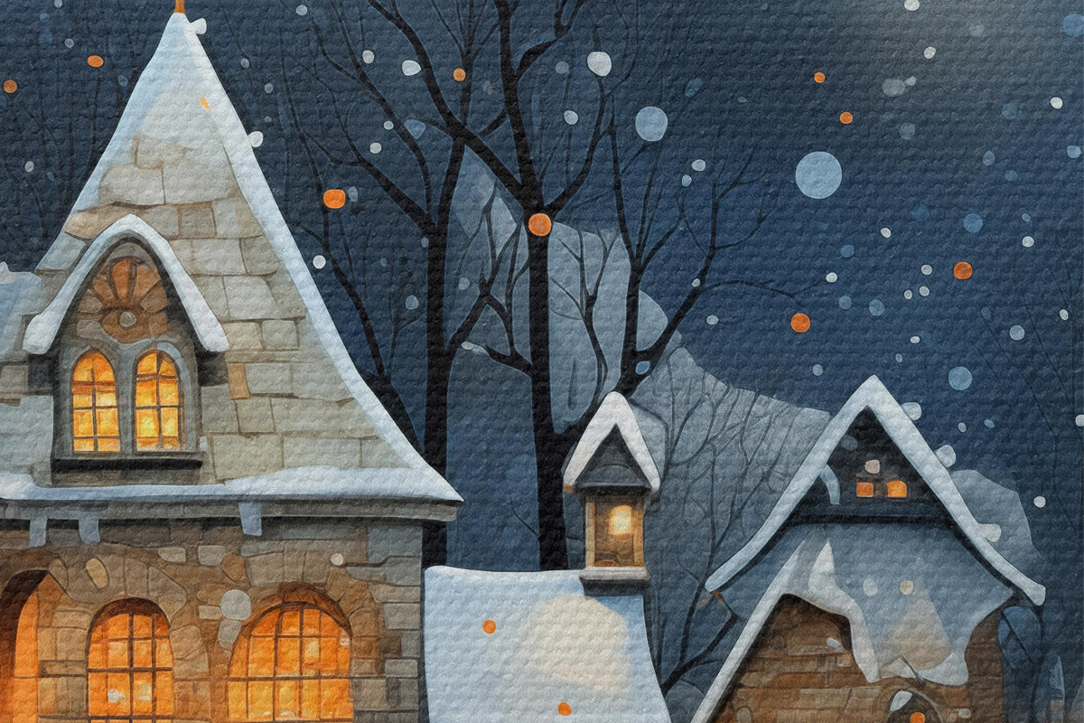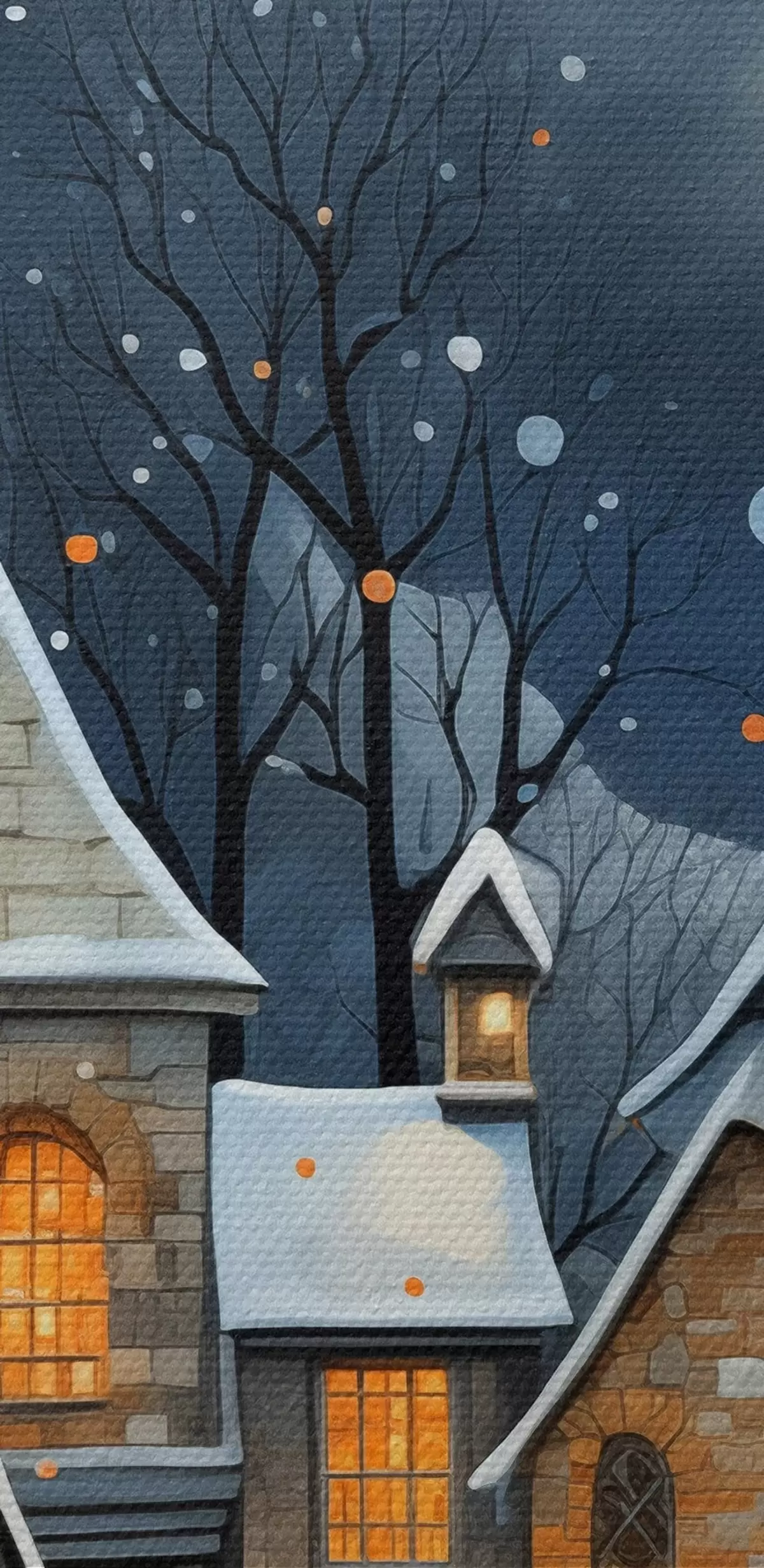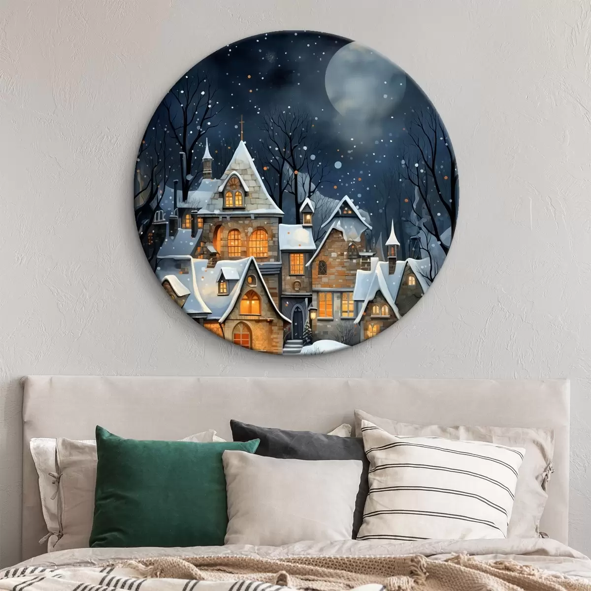 Runde Wandbilder Häuser im Schnee vor dem nächtlichen Sternenhimmel Nr r41276