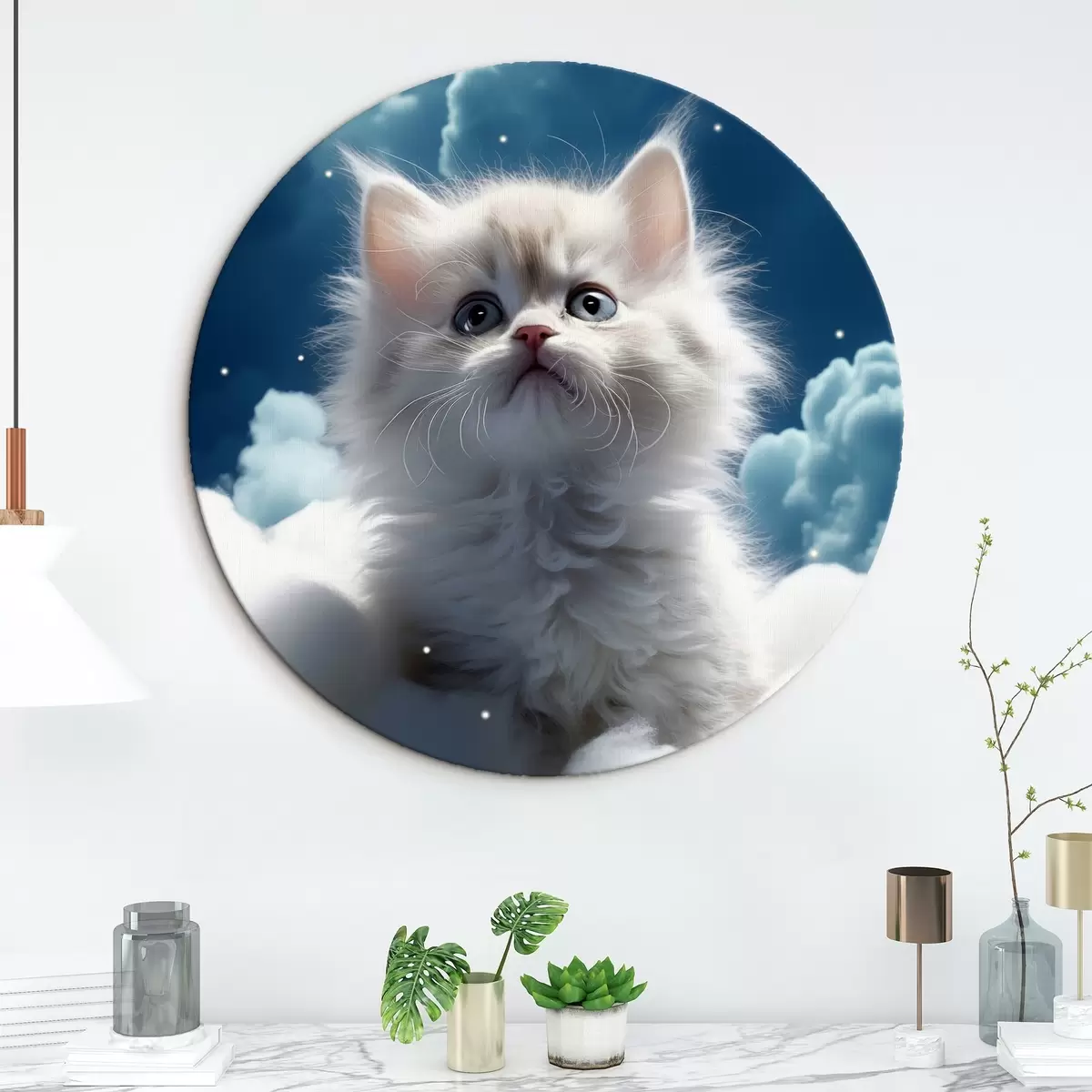 Runde Wandbilder Ein weißes flauschiges Kätzchen am Himmel sitzt auf einer Wolke Nr r41279
