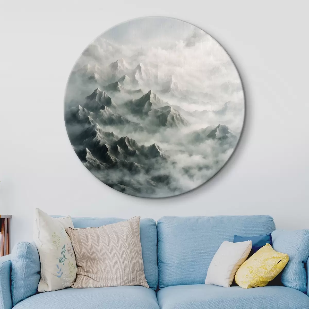 Runde Wandbilder Schneebedeckte Berge im Nebel Nr r41301