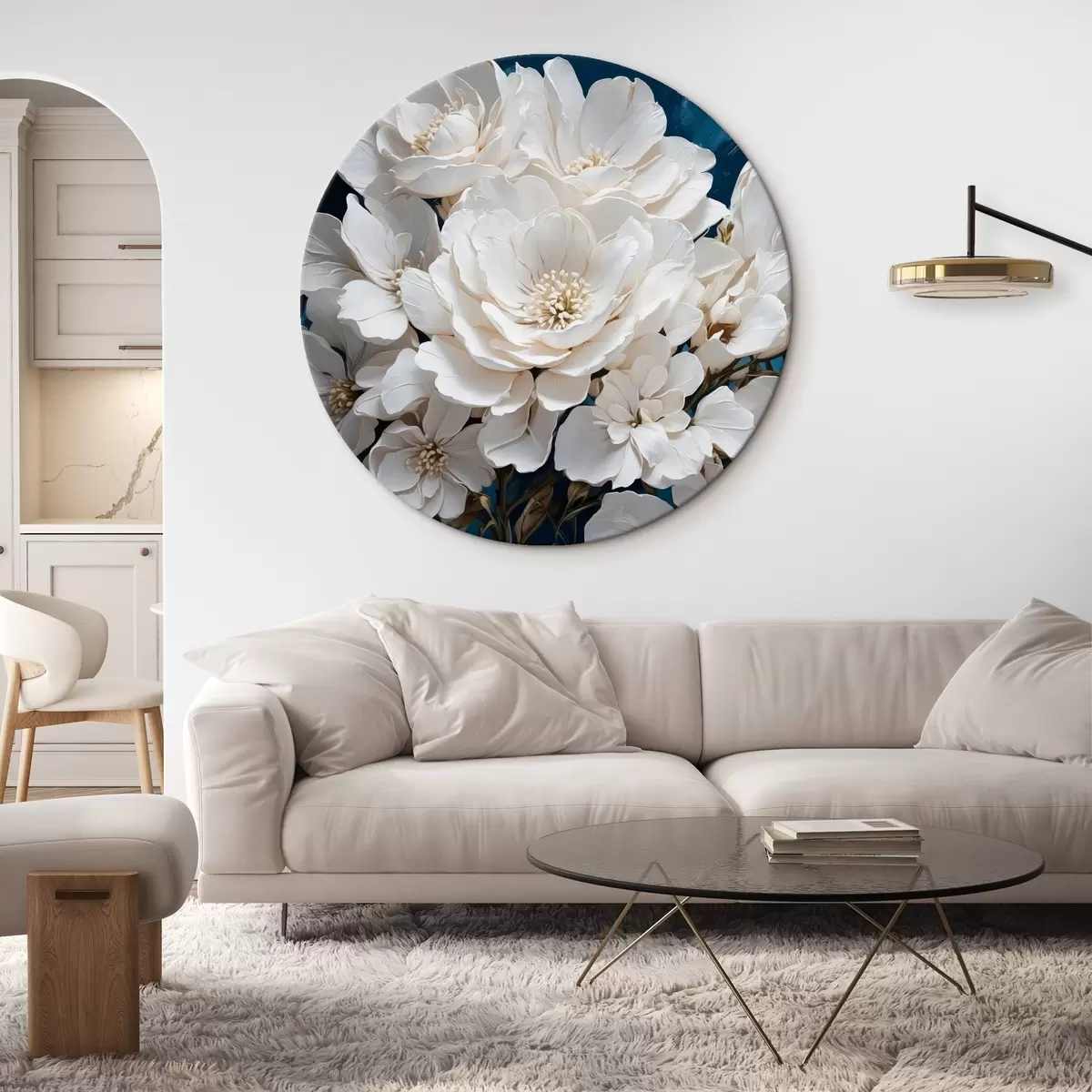 Runde Wandbilder Weiße Blumen auf einem Acryl-Hintergrund Nr r41314