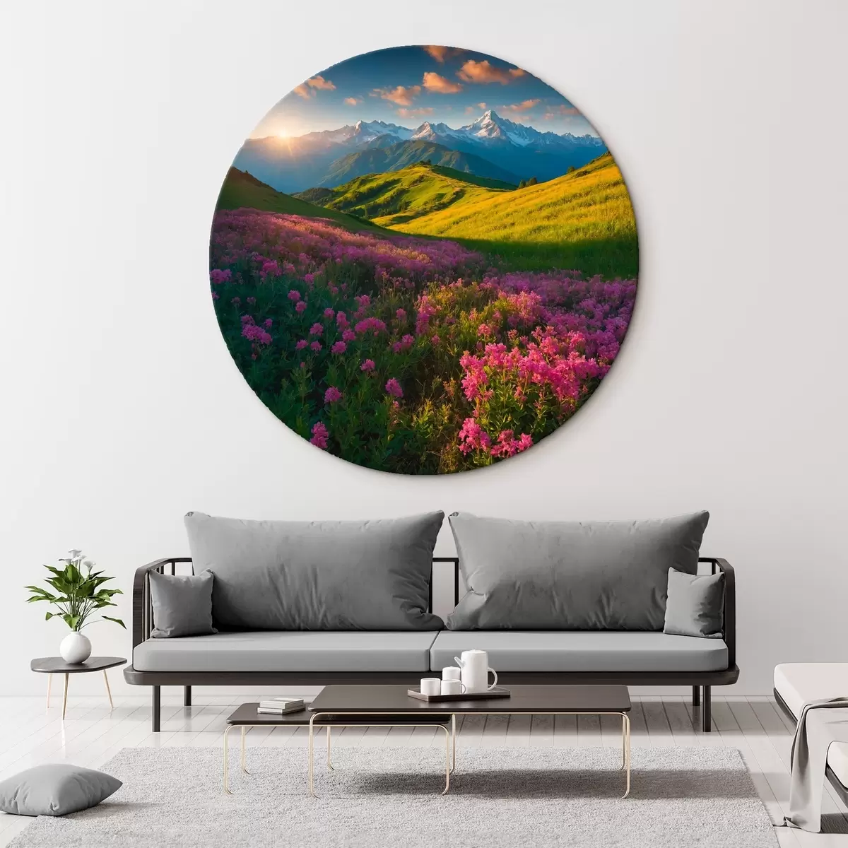 Runde Wandbilder Veilchen auf den Berggipfeln r41317