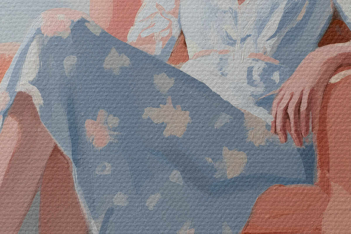 Um die Leinwand auf Keilrahmen zu spannen, ohne das Bild zu beschädigen, verwenden wir ein gespiegeltes Bild.