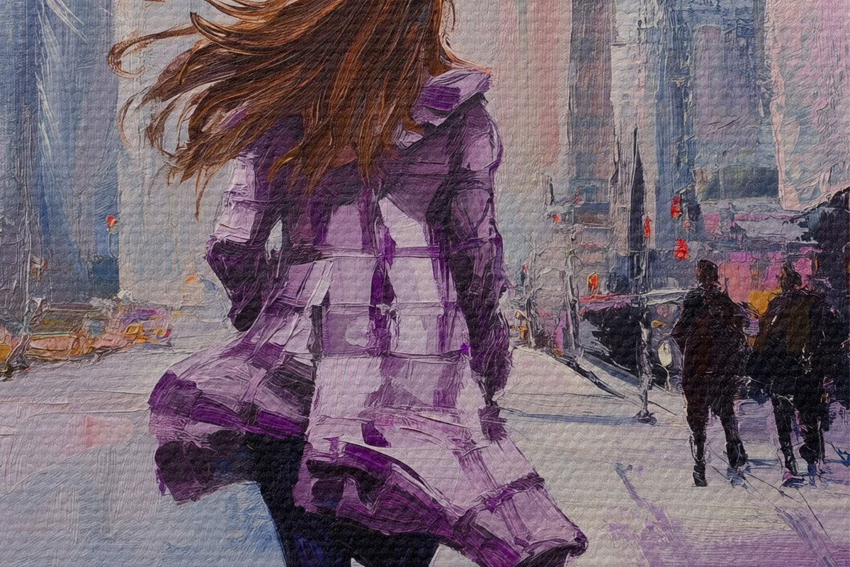 Runde Wandbilder Mädchen im lila Mantel Nr r41345