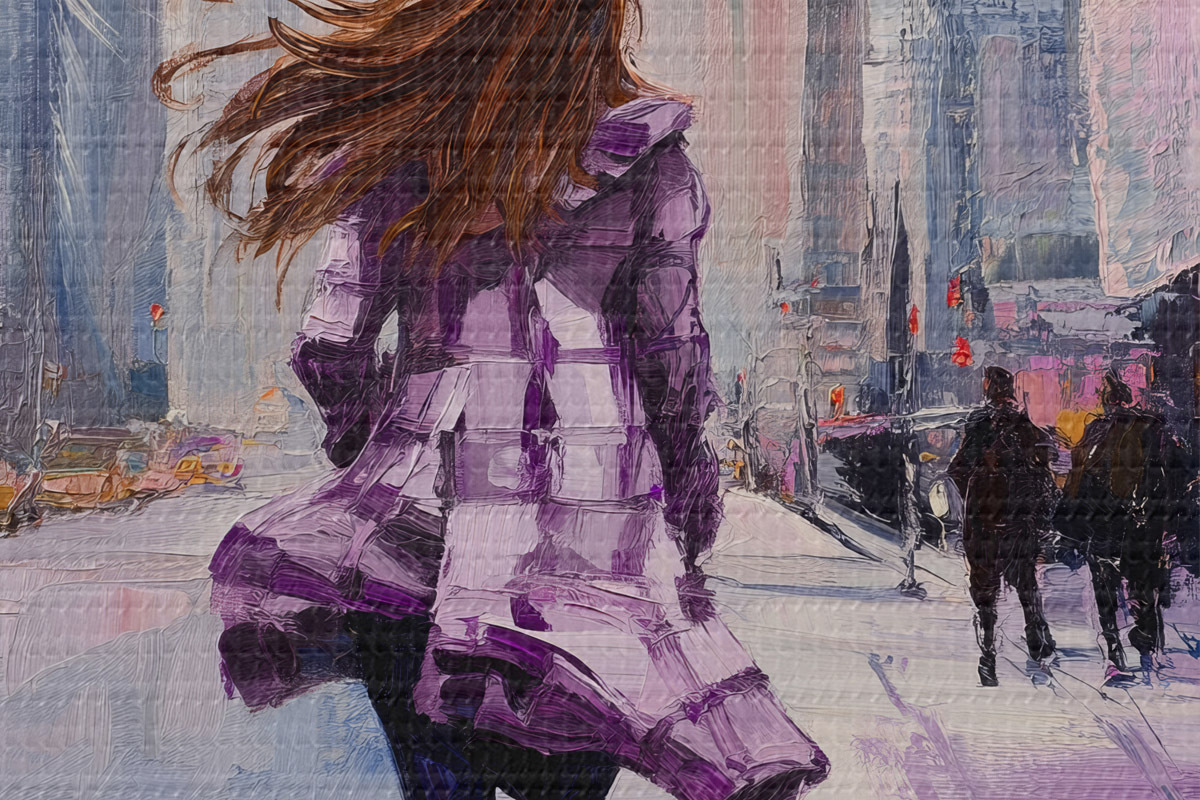 Runde Wandbilder Mädchen im lila Mantel r41345