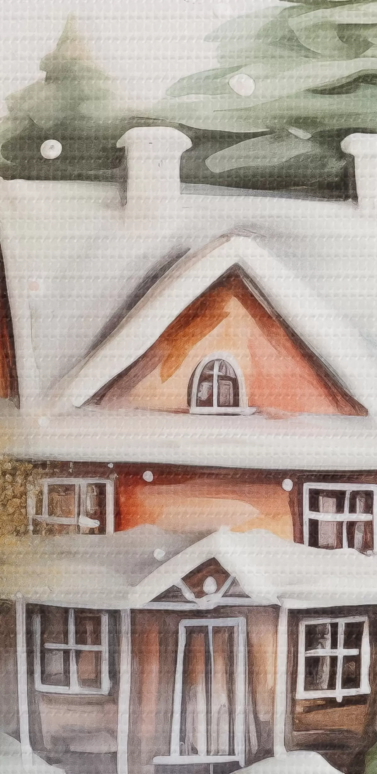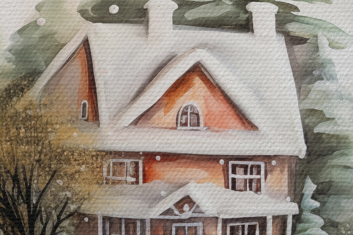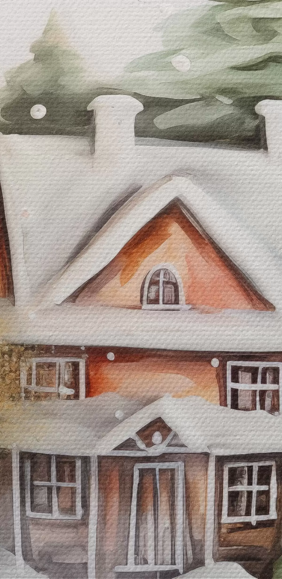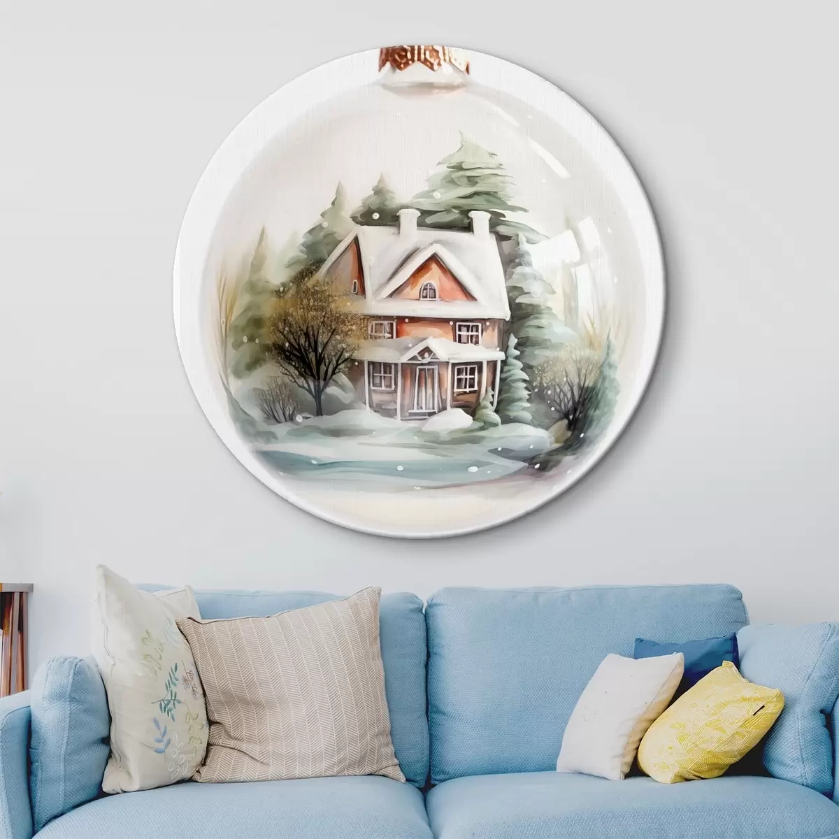 Runde Wandbilder Kristallkugel mit Aquarellhaus und Bäumen im Schnee Nr r41365