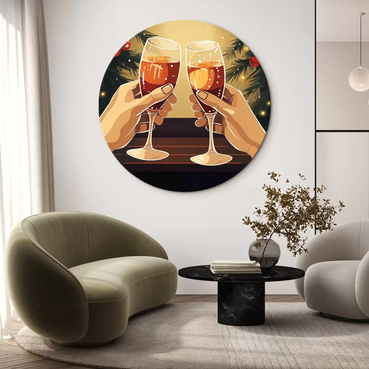 Runde Wandbilder Champagnergläser, Feier, Neujahr, Weihnachtsbeleuchtung Nr r41372