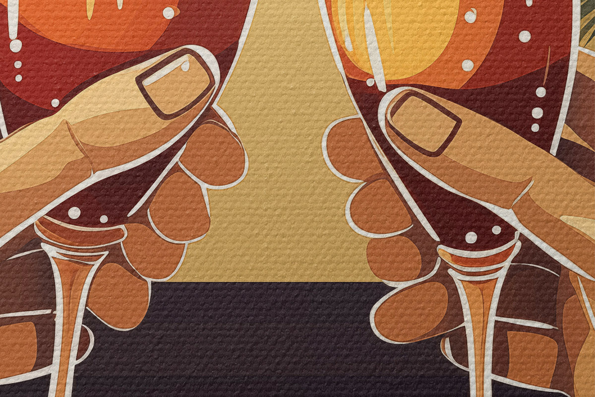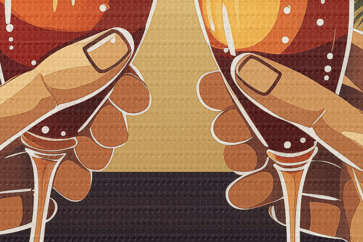Runde Wandbilder Champagnergläser, Feier, Neujahr, Weihnachtsbeleuchtung r41372
