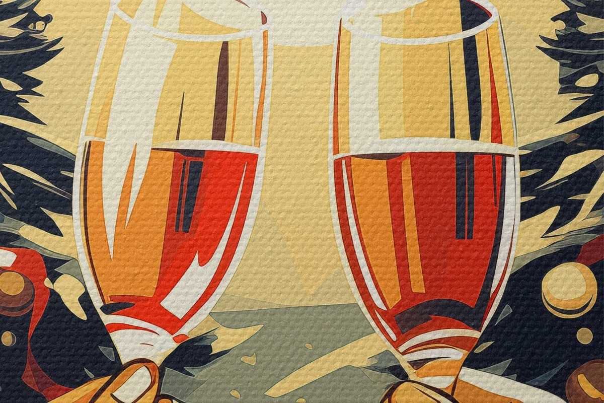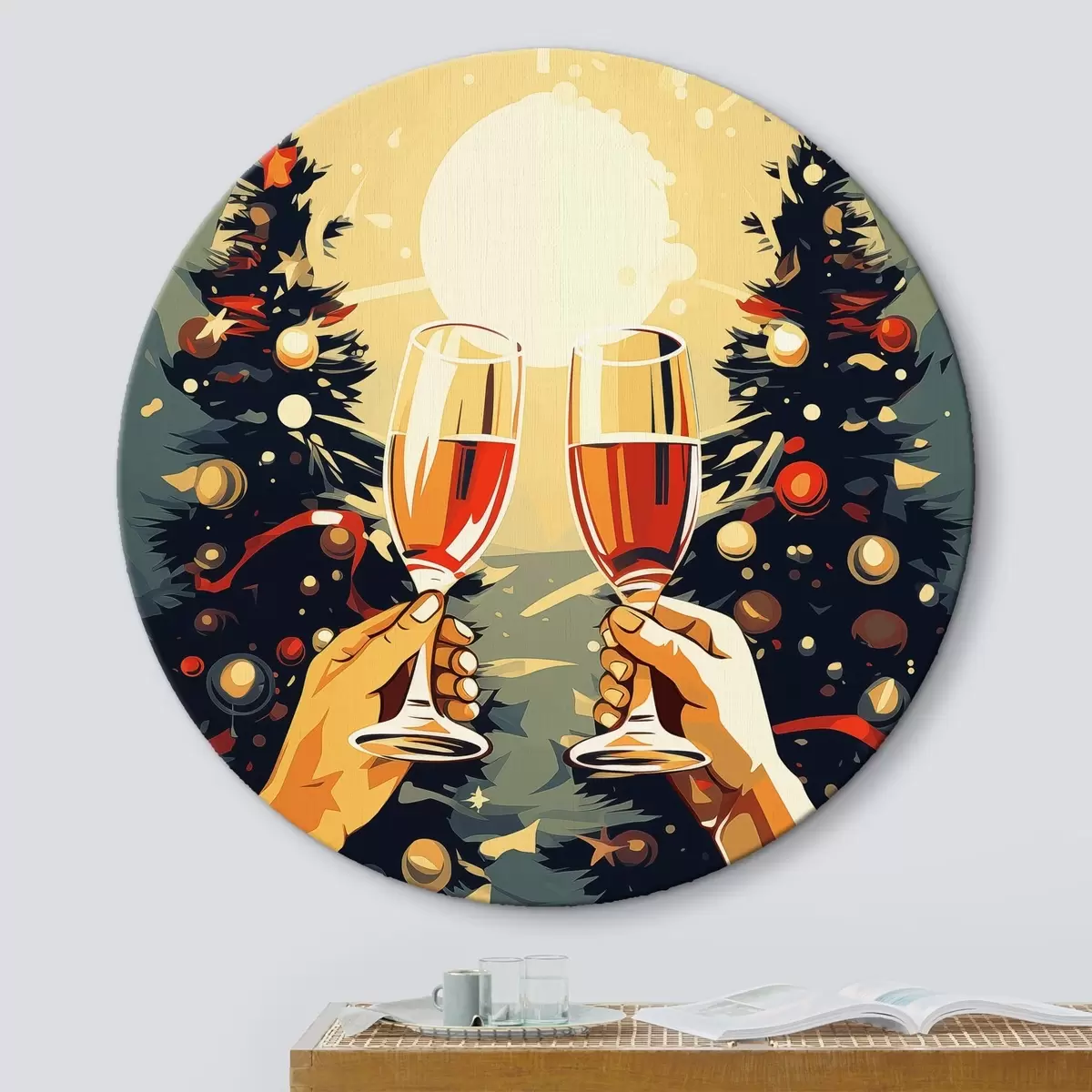 Runde Wandbilder Gläser mit Sekt, Weihnachten, Neujahr, Abstraktion, Pop Art, Tannenbäume Nr r41374