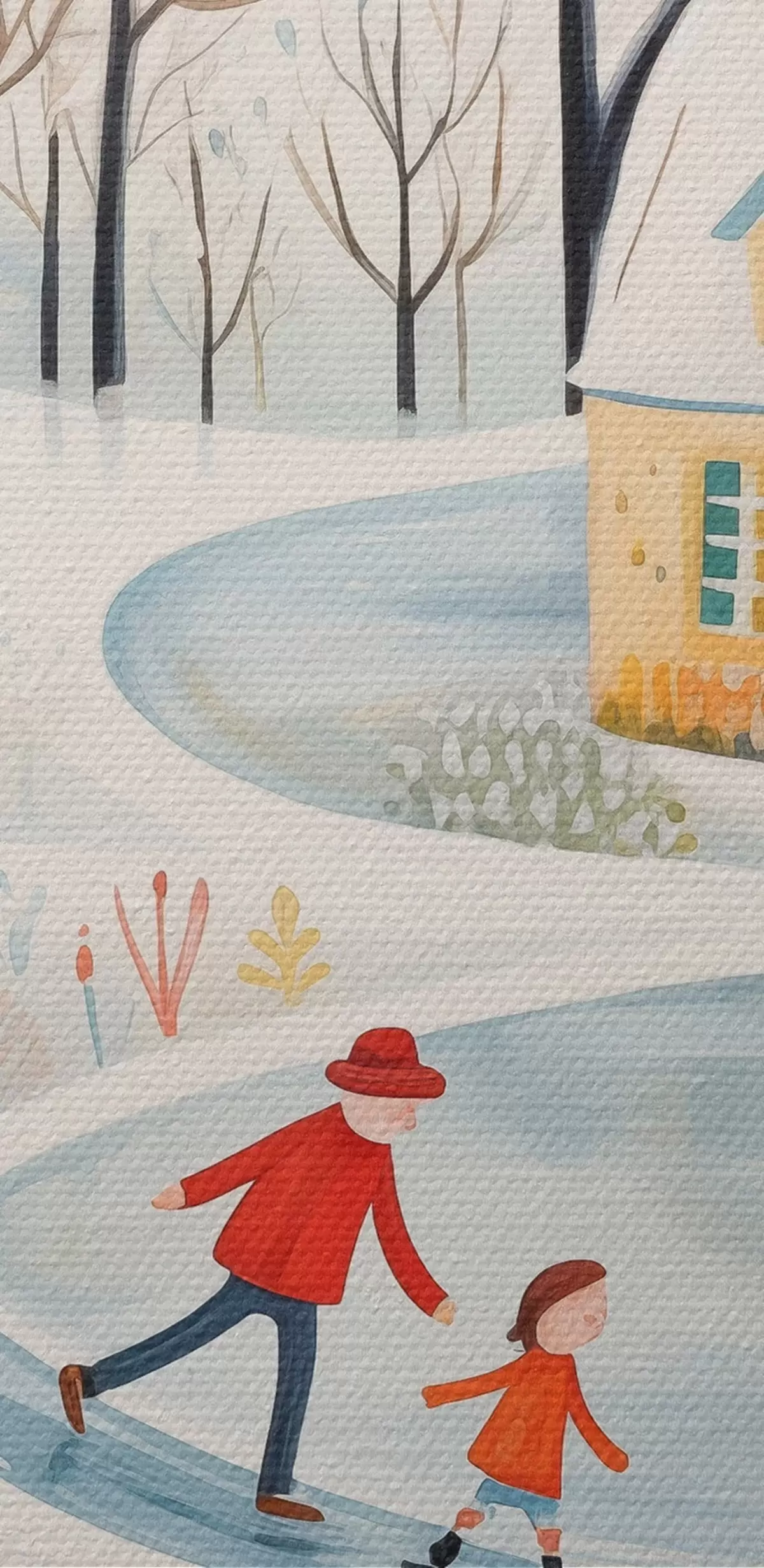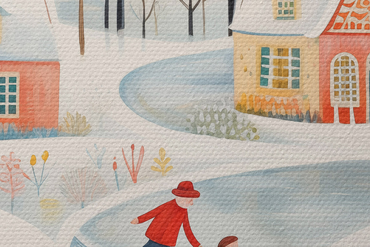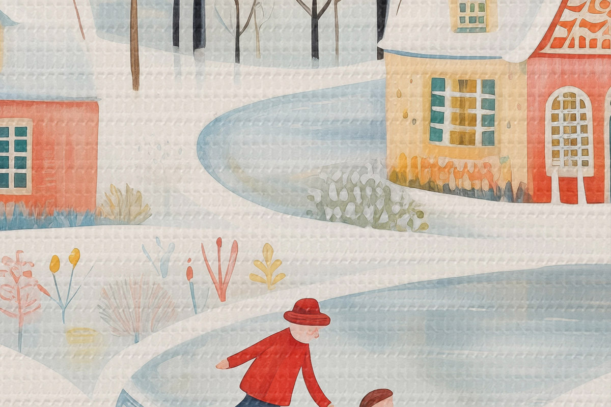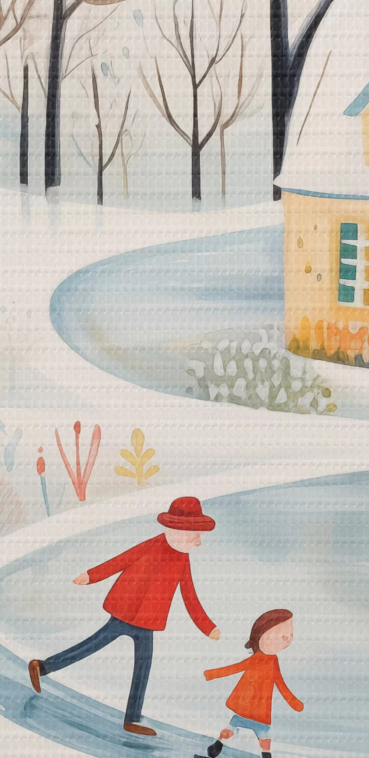 Runde Wandbilder Winterdorf, Wald, Blumen, Schlittschuhe, bunte Häuser r41378