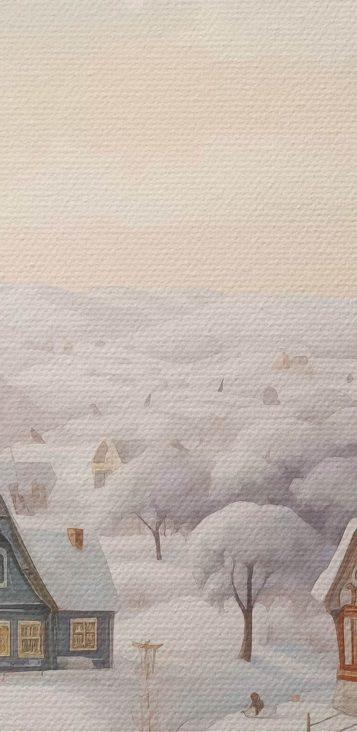 Runde Wandbilder Schöne Winterlandschaft mit Dorf, Bäumen, Häusern, Aquarell Nr r41379