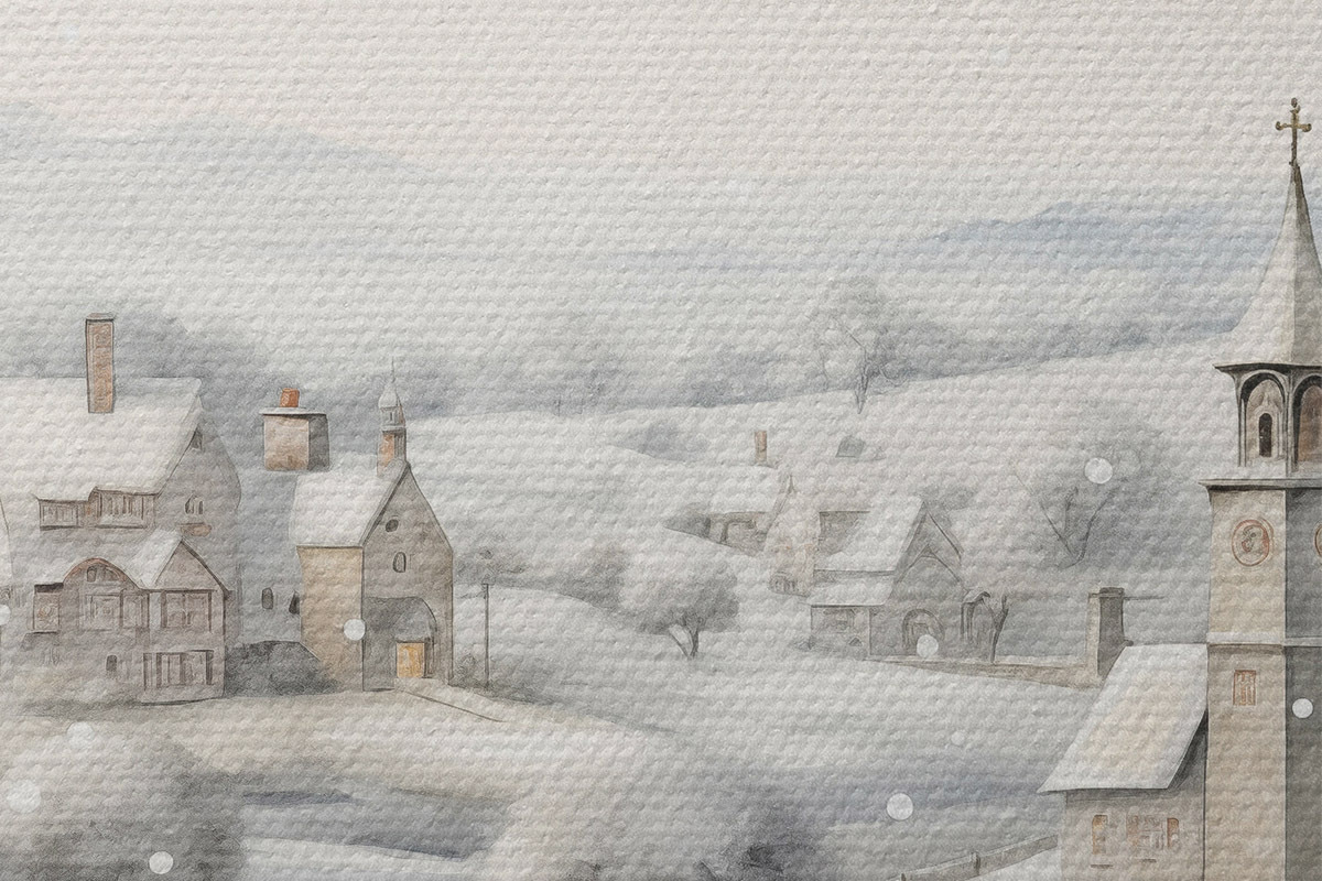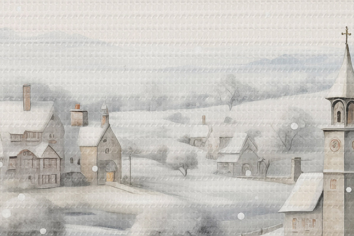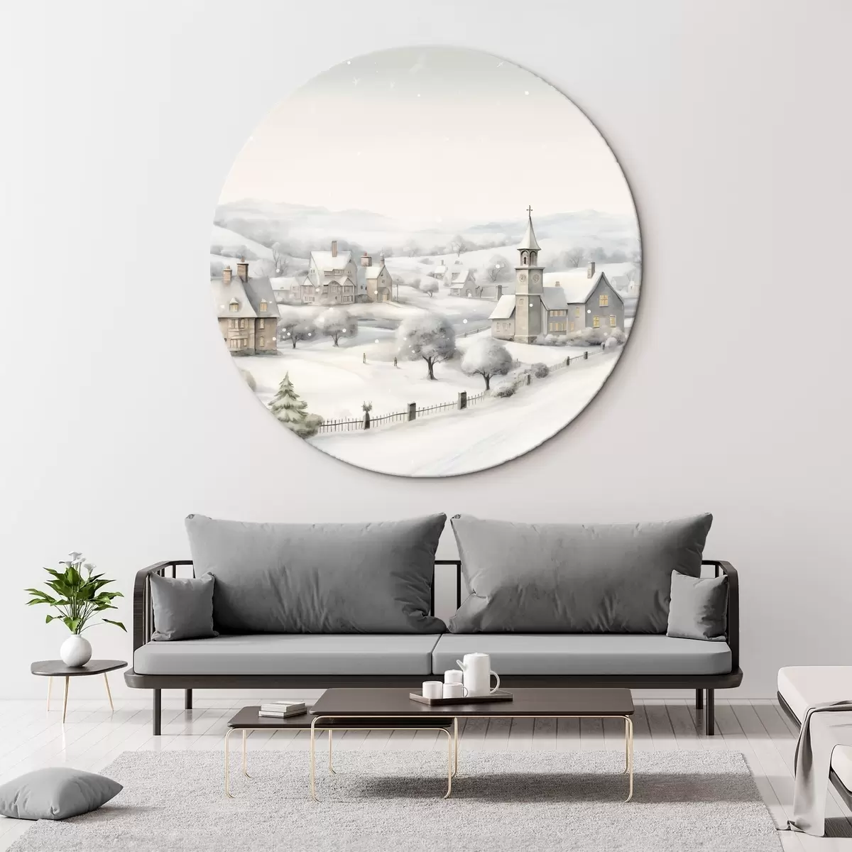 Runde Wandbilder Schöne Winterdorf, Bäume, Häuser, Aquarell, Berge Nr r41382