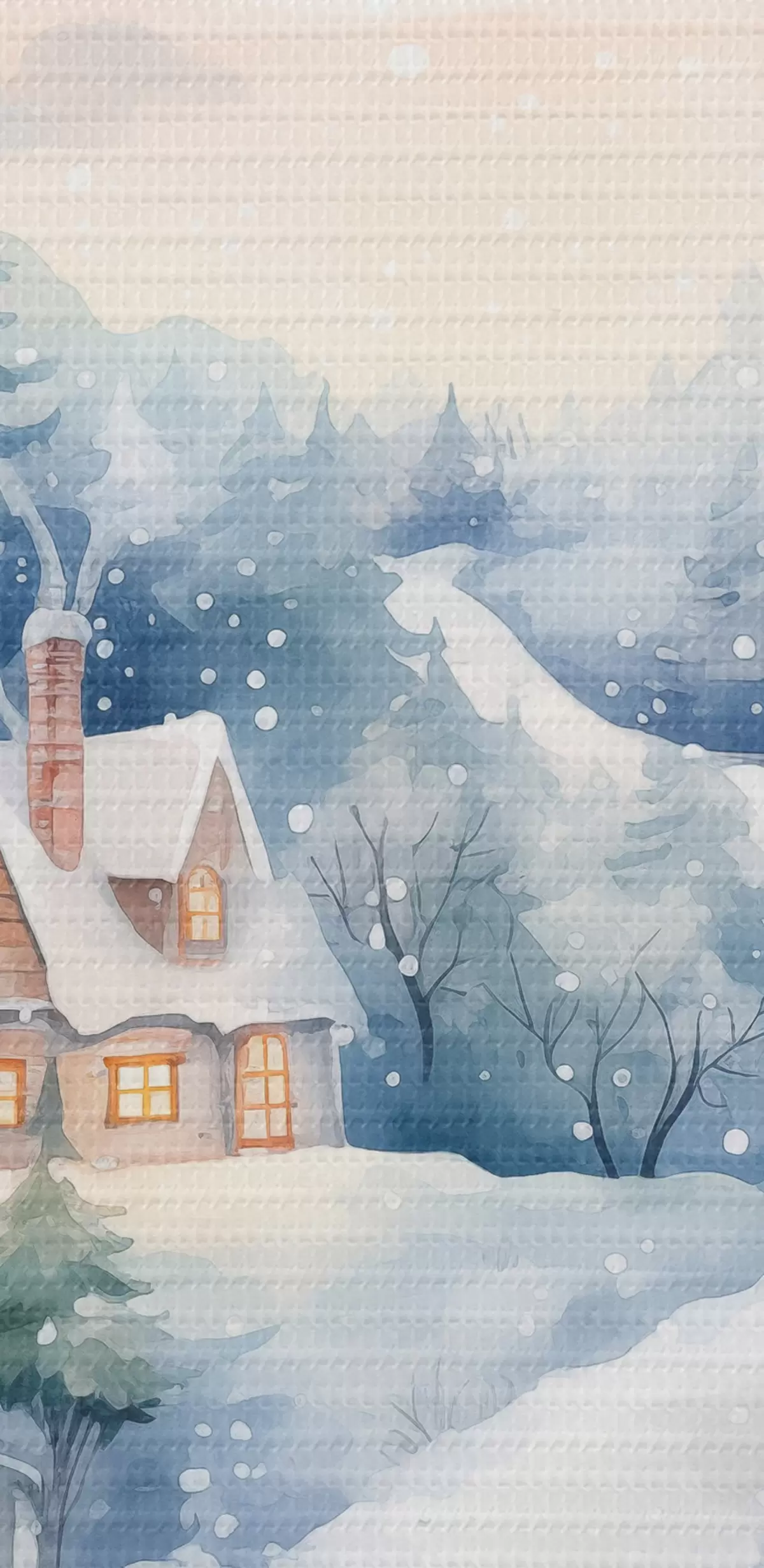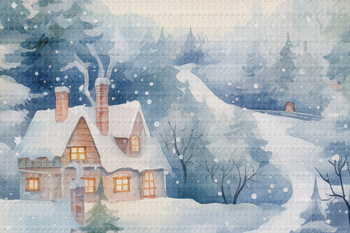 Runde Wandbilder Aquarell Winterlandschaft, Kiefernwald, Häuser Nr r41387