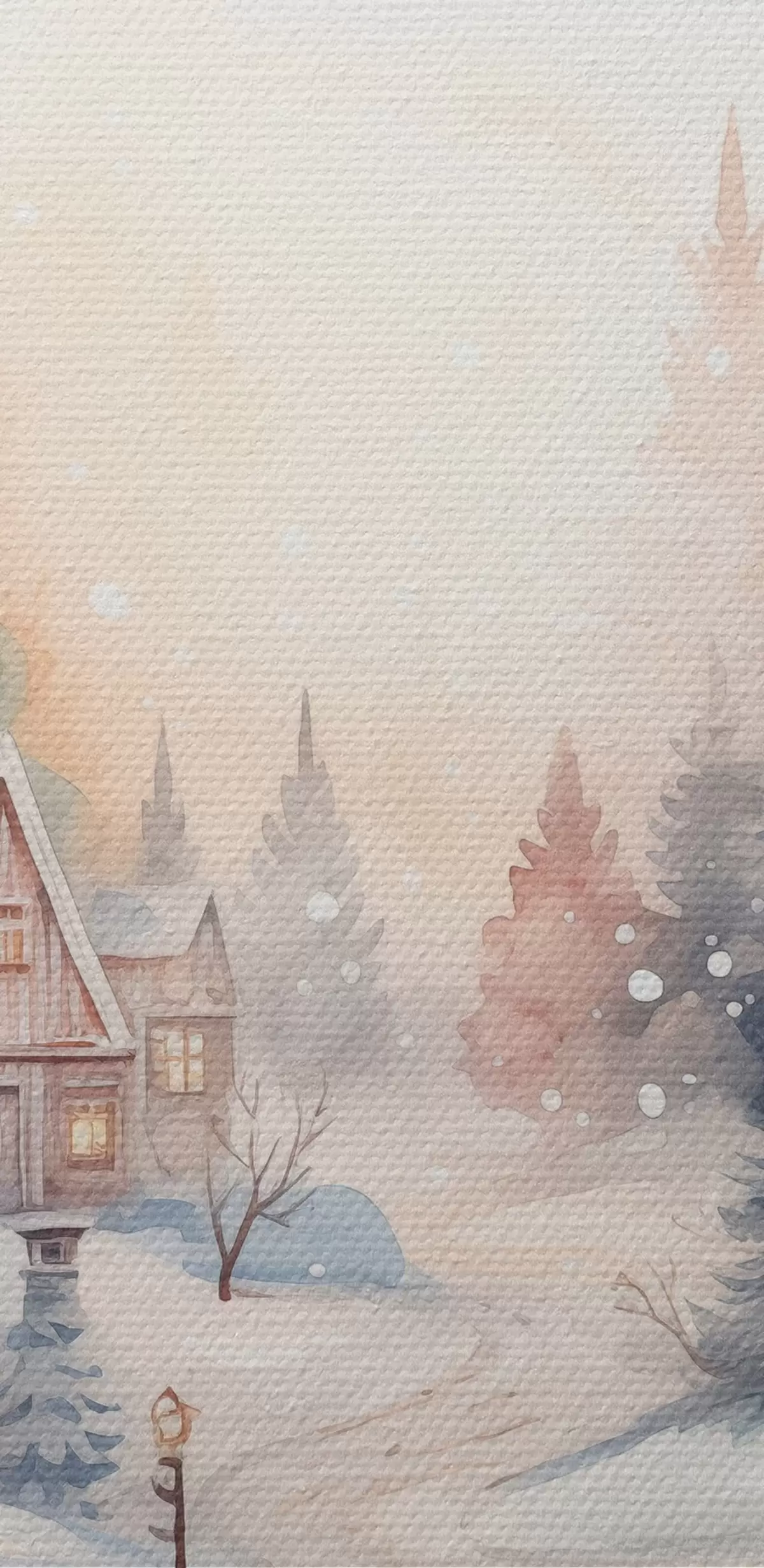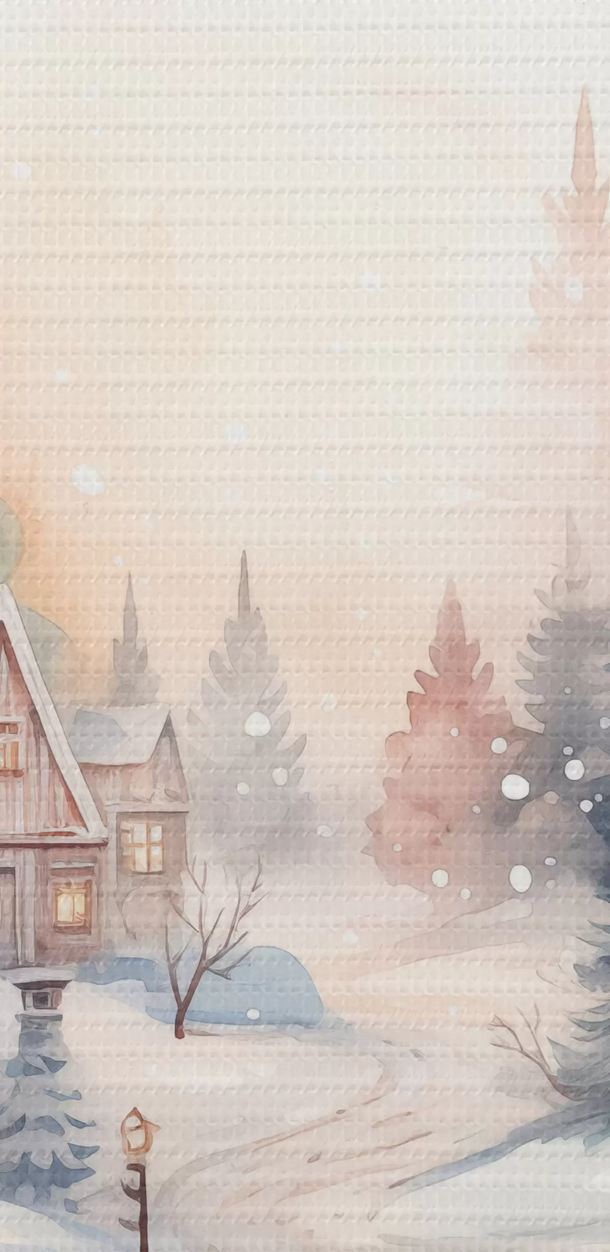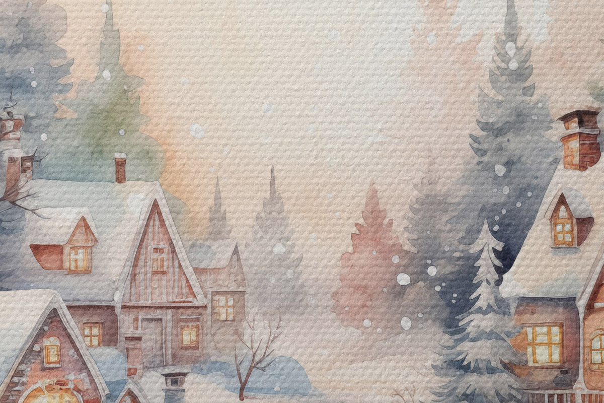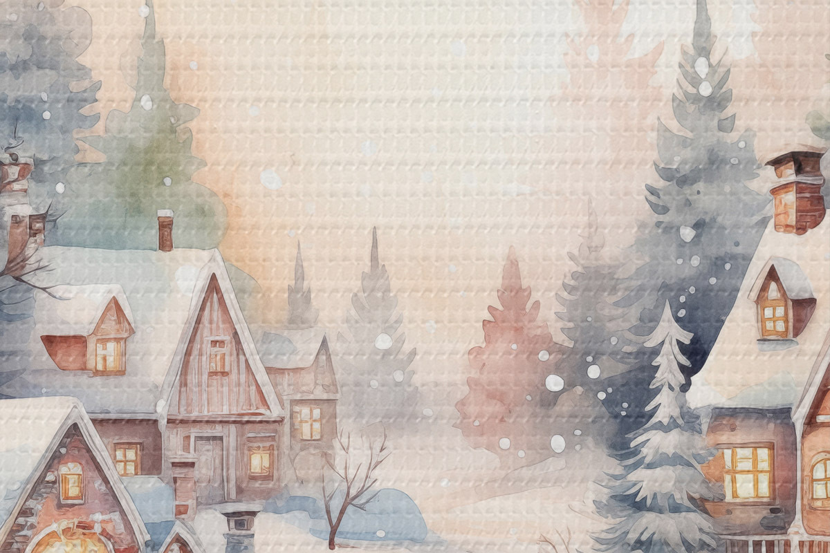 Runde Wandbilder Winterlandschaft, Kiefernwald, schöne Häuser, Aquarell, Susnet Nr r41390