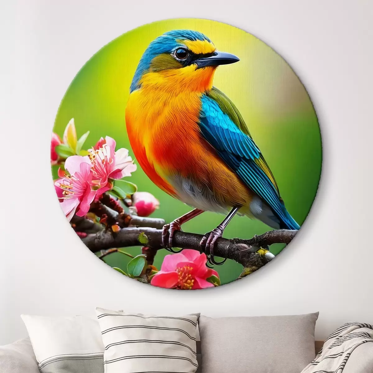 Runde Wandbilder heller Vogel auf einem Zweig mit Blumen Nr r41412