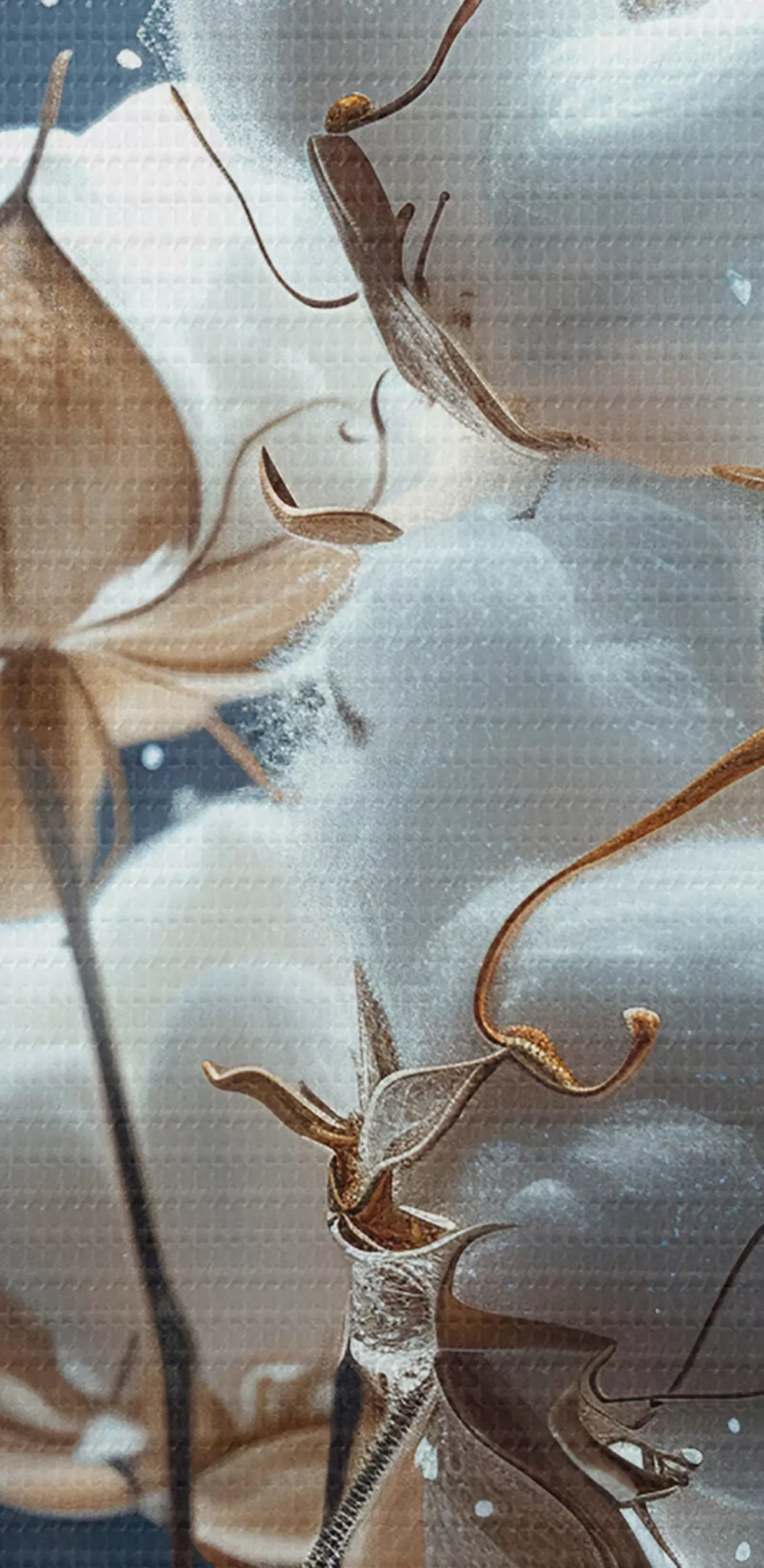 Drei Materialtypen stehen zur Verfügung: Economic Canvas - ein dichtes und haltbares Material für den Digitaldruck, identisch mit Malerleinwand, wasserfeste Oberfläche, realistische Wiedergabe von Details, mittelkörniges Material. Premium Canvas - die Textur ähnelt der einer Malerleinwand (verwobene kleine Fäden). Weiche, detaillierte Wiedergabe des Bildes auf einer matten Oberfläche. Eco-Premium - hochwertiges Gewebe aus 100% Baumwolle. Dank der natürlichen Baumwollfasern ist das Material langlebig und verschleißfest. Hervorragende Farbwiedergabe und Detailtreue.