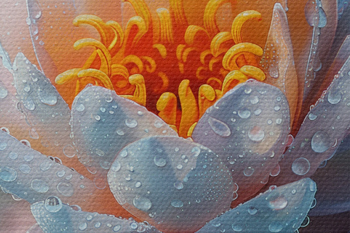 Drei Materialtypen stehen zur Verfügung: Economic Canvas - ein dichtes und haltbares Material für den Digitaldruck, identisch mit Malerleinwand, wasserfeste Oberfläche, realistische Wiedergabe von Details, mittelkörniges Material. Premium Canvas - die Textur ähnelt der einer Malerleinwand (verwobene kleine Fäden). Weiche, detaillierte Wiedergabe des Bildes auf einer matten Oberfläche. Eco-Premium - hochwertiges Gewebe aus 100% Baumwolle. Dank der natürlichen Baumwollfasern ist das Material langlebig und verschleißfest. Hervorragende Farbwiedergabe und Detailtreue.