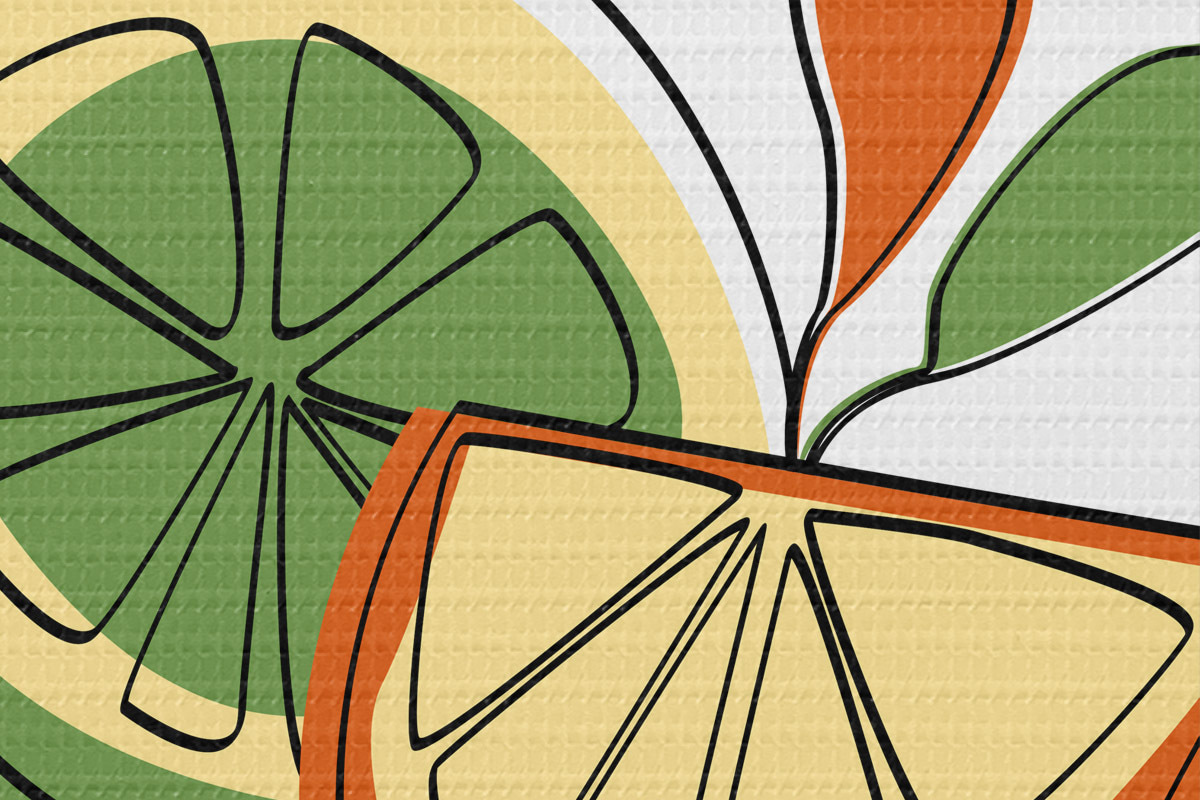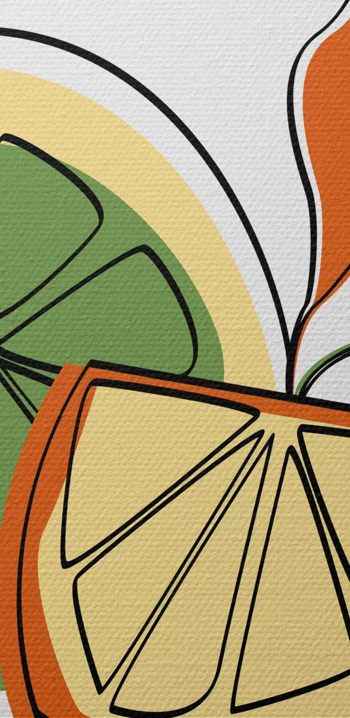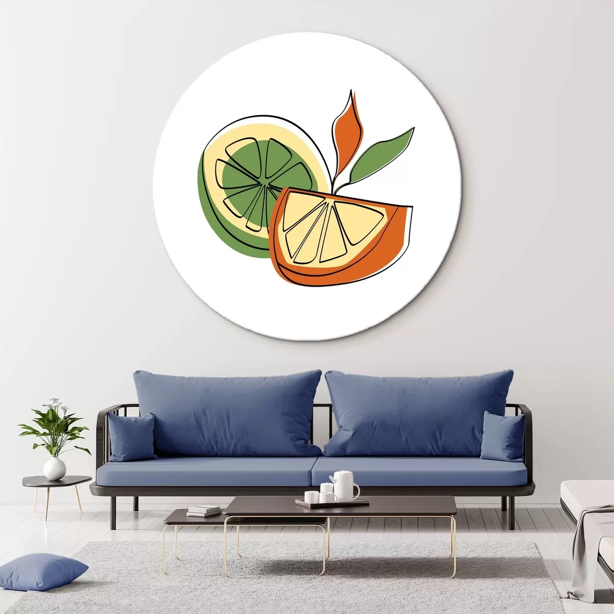 Runde Wandbilder Zitrusfrüchte lineare Zeichnung, Abstraktion r41468
