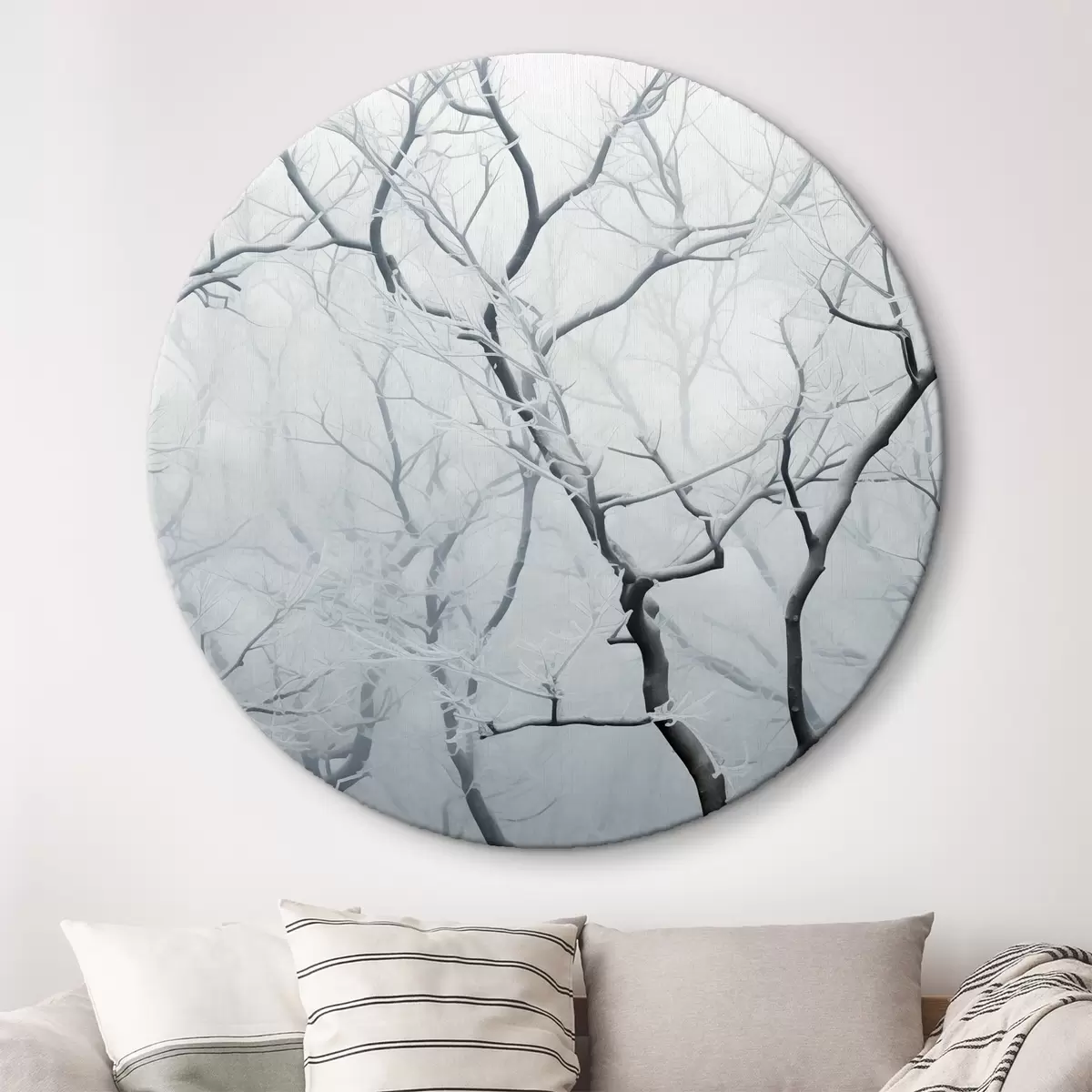 Runde Wandbilder Baumzweige im Frost, Minimalismus r41469