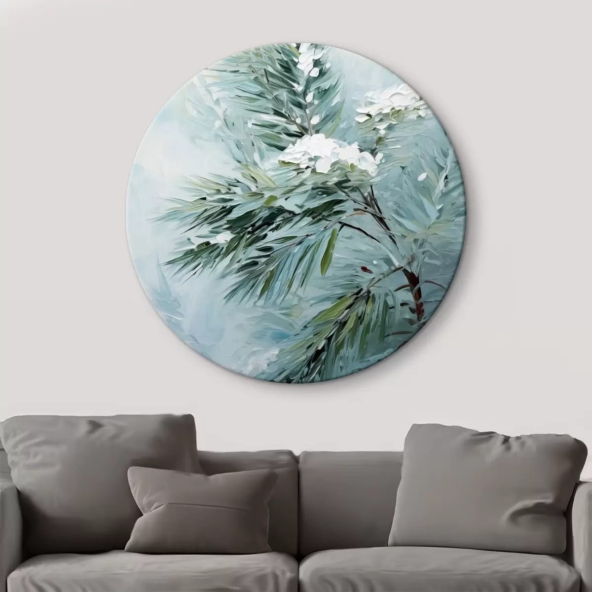 Runde Wandbilder Fichtenzweig in einer verschneiten Imitation des Gemäldes Nr r41474