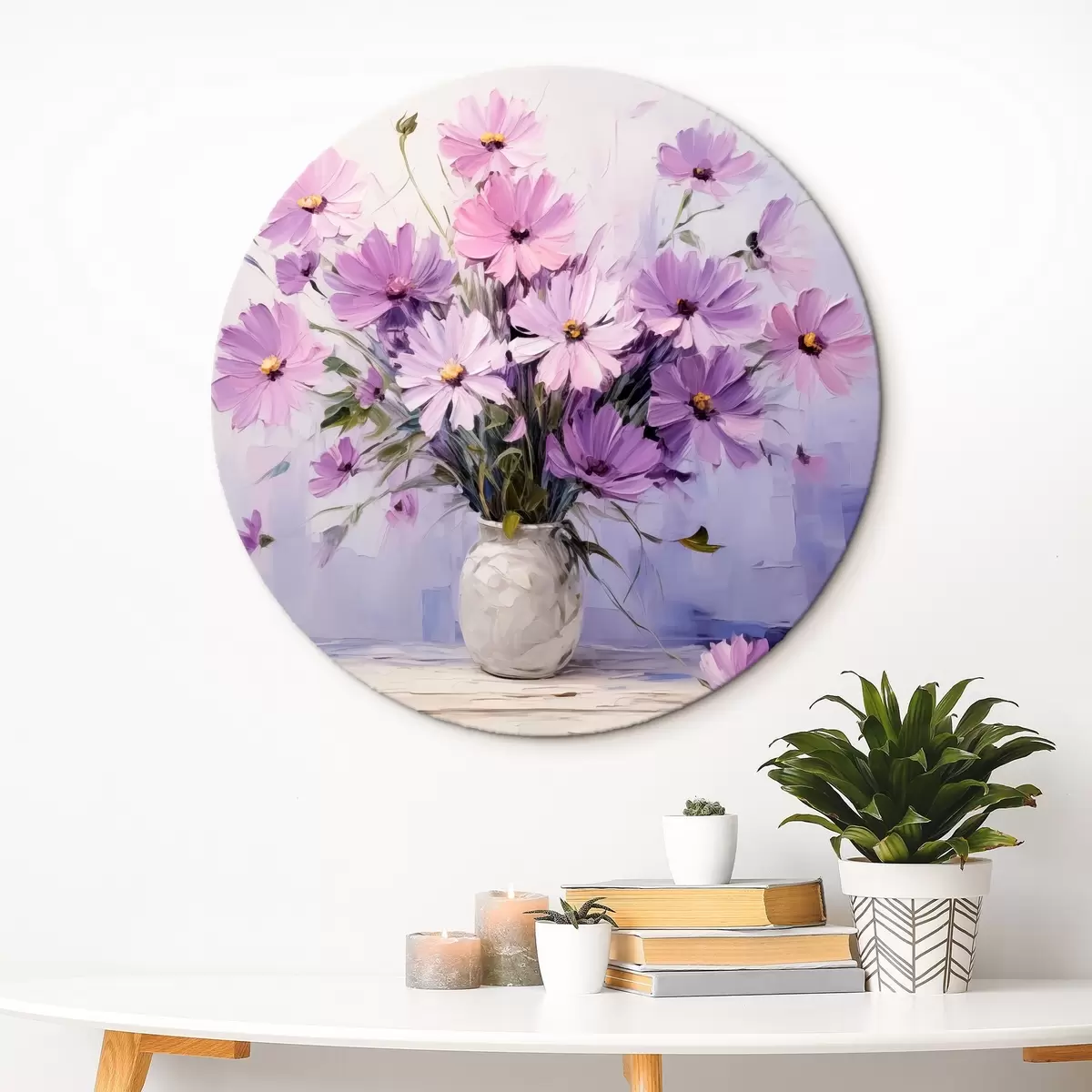 Runde Wandbilder Zarte lila Blumen in einer Vase Nr r41475