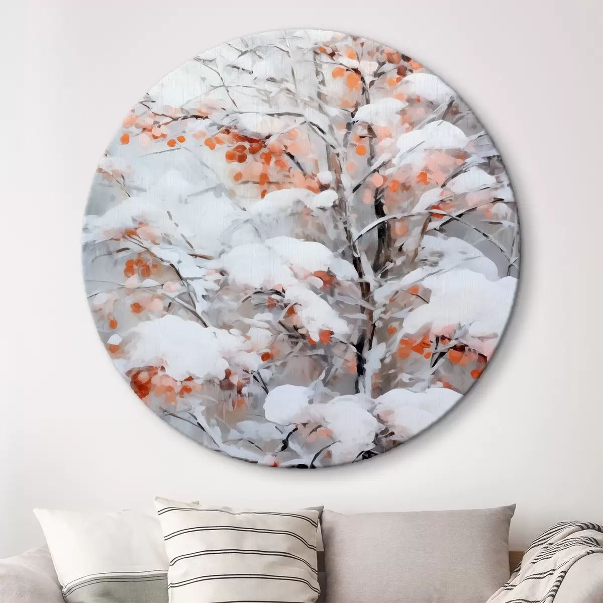 Runde Wandbilder Baum mit Beeren unter dem Schnee r41477