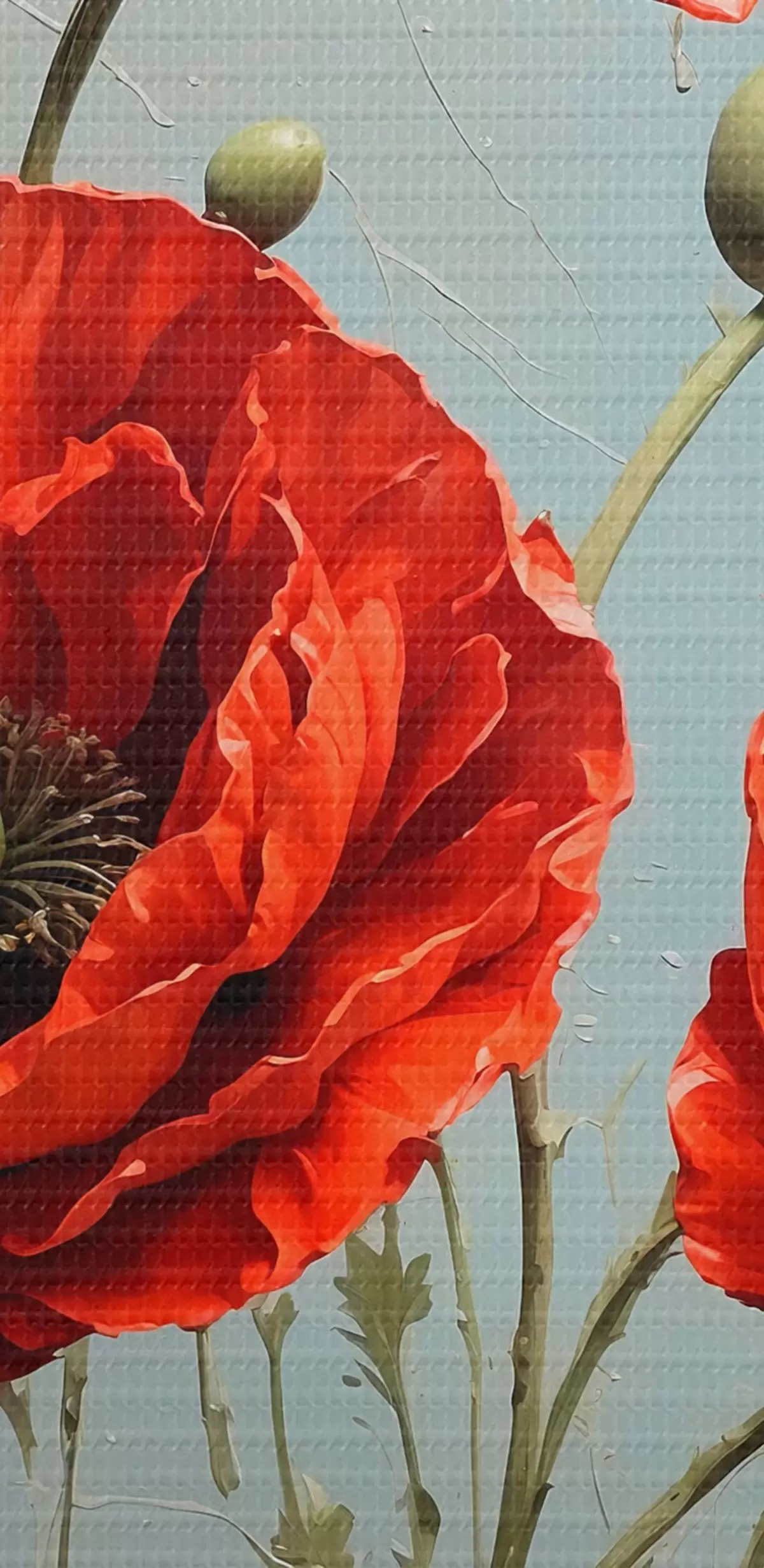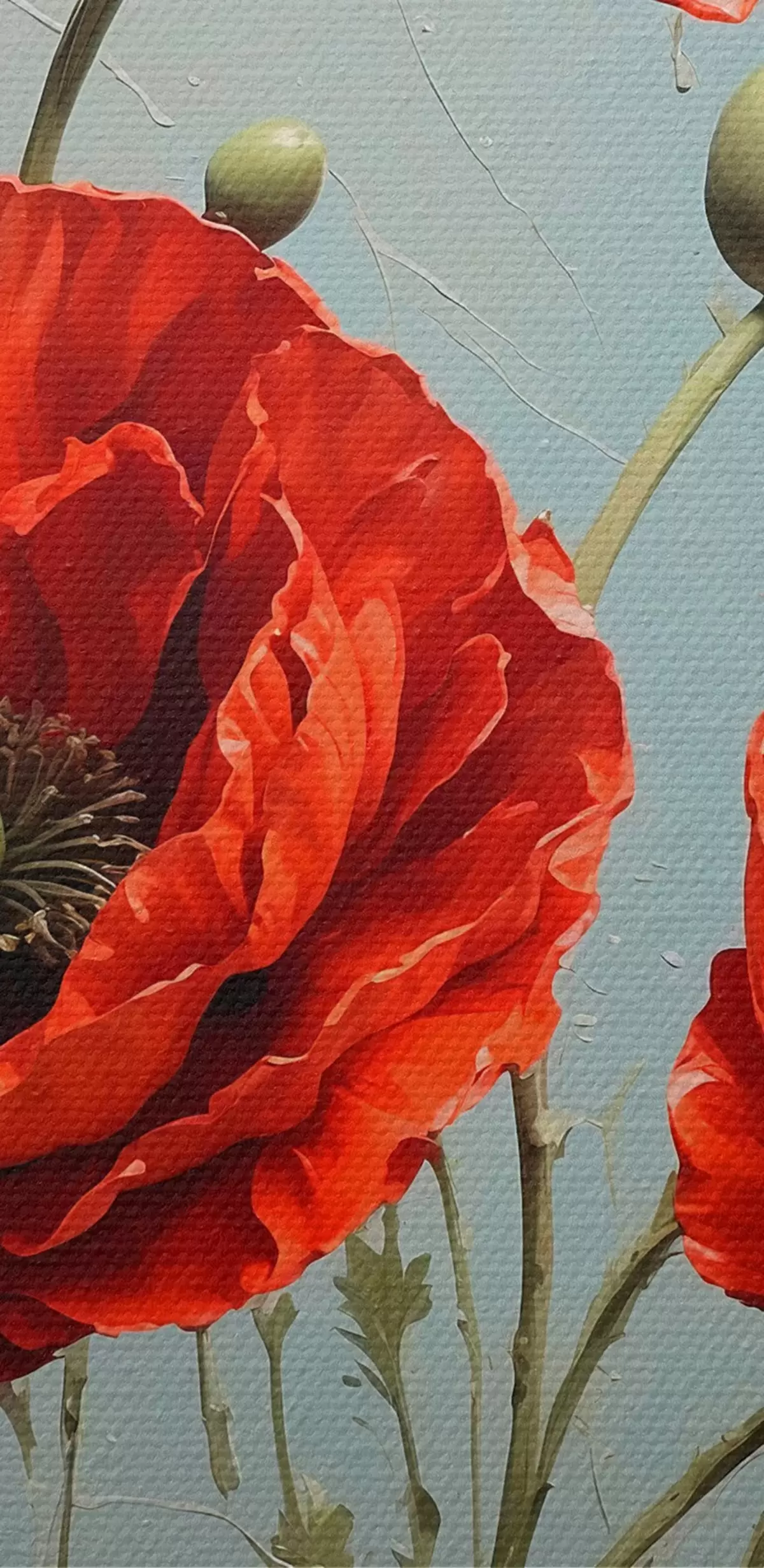 Runde Wandbilder Mohnblumen auf blauem Hintergrund r41773