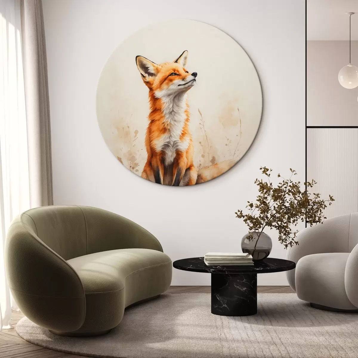 Runde Wandbilder Fuchs auf beigem Hintergrund Nr r41778