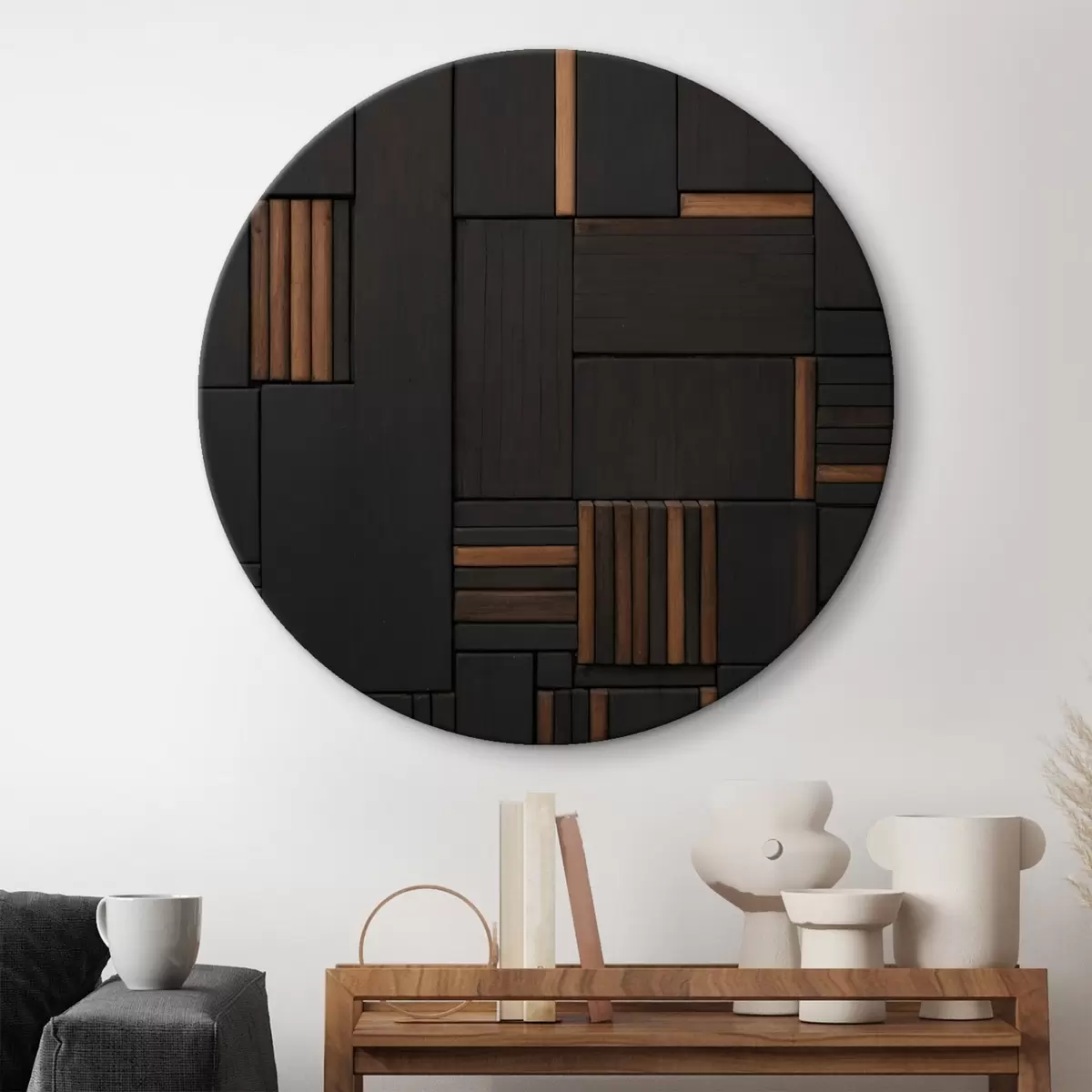 Runde Wandbilder Wand mit dem Bild von Holzfliesen r41782