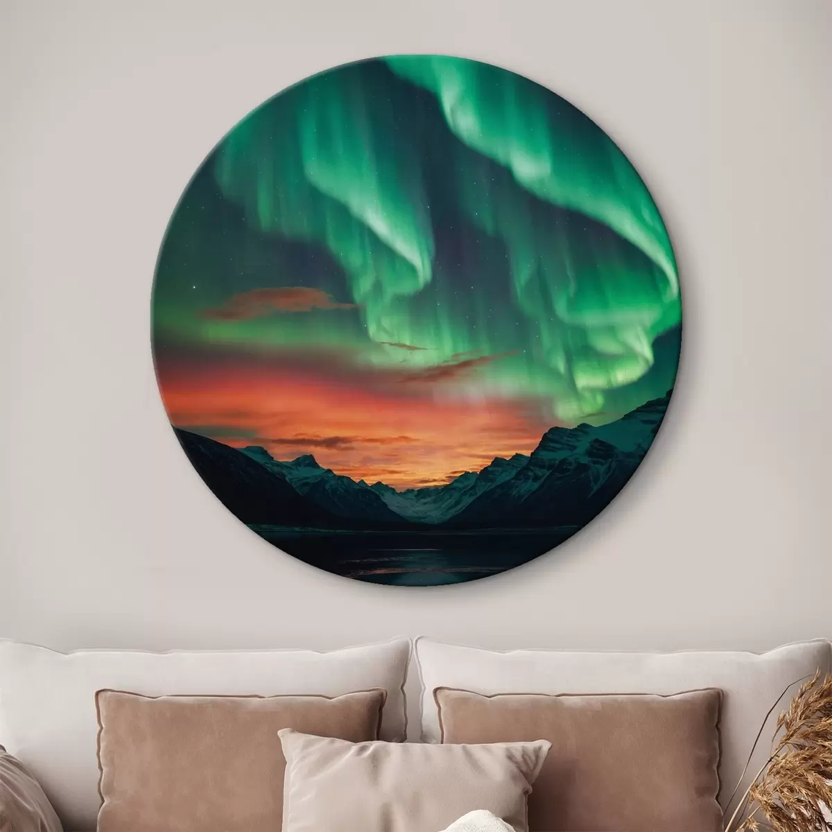 Runde Wandbilder Nordlichter über den Bergen r41783