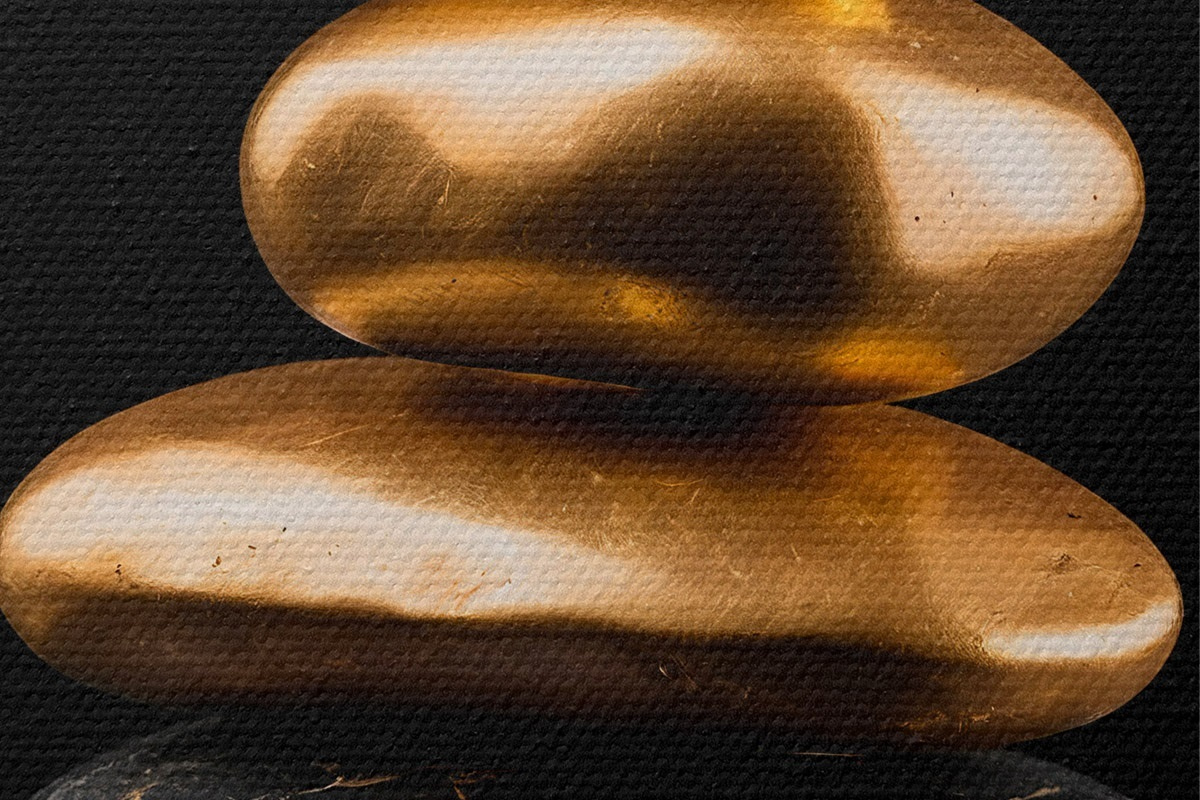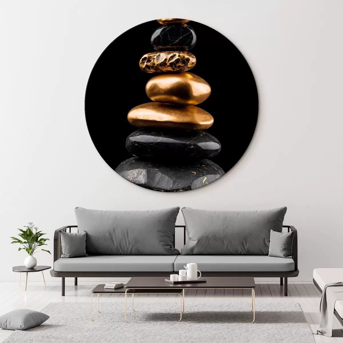 Runde Wandbilder Schwarze und gelbe Felsen auf dunklem Hintergrund Nr r42094