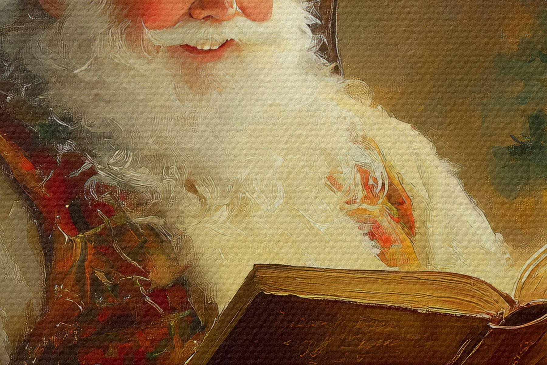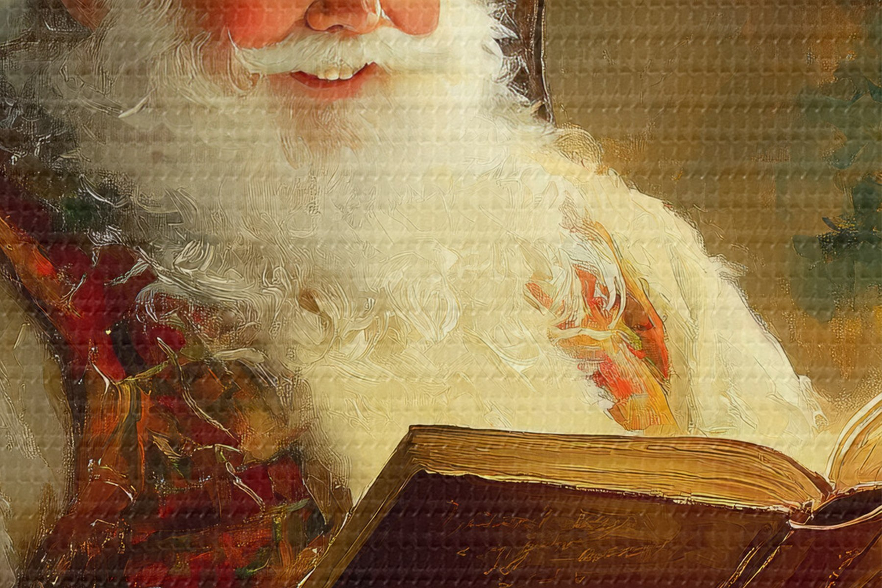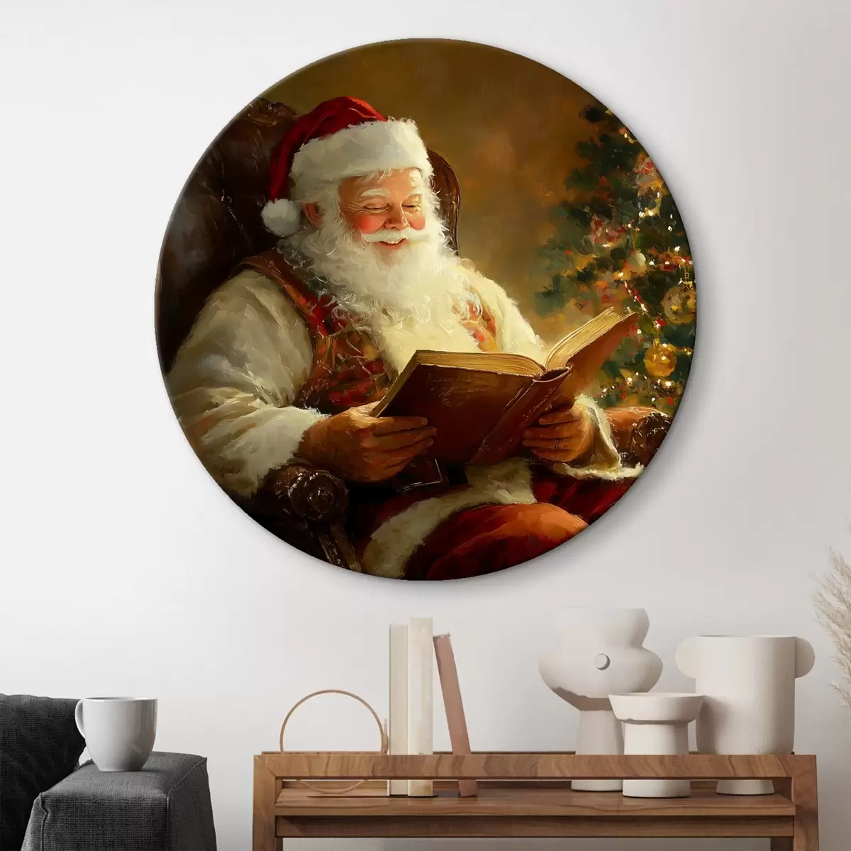 Runde Wandbilder Der Weihnachtsmann liest ein Buch in der Nähe des Weihnachtsbaums Nr r42100