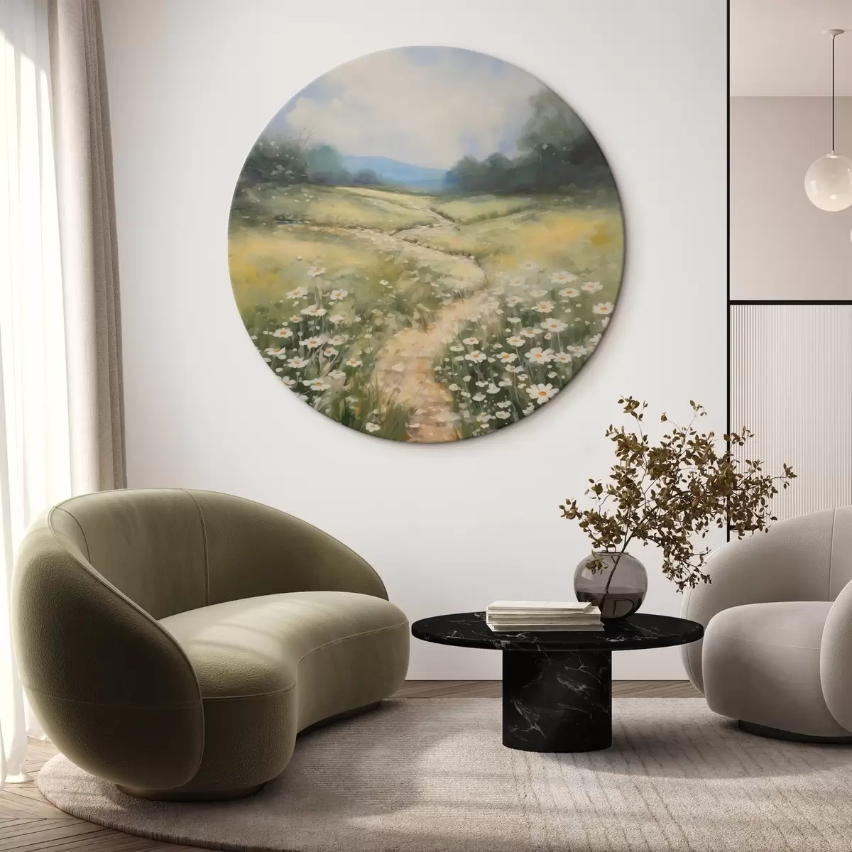 Runde Wandbilder Wiese mit Gänseblümchen Nachahmung der Malerei r42134