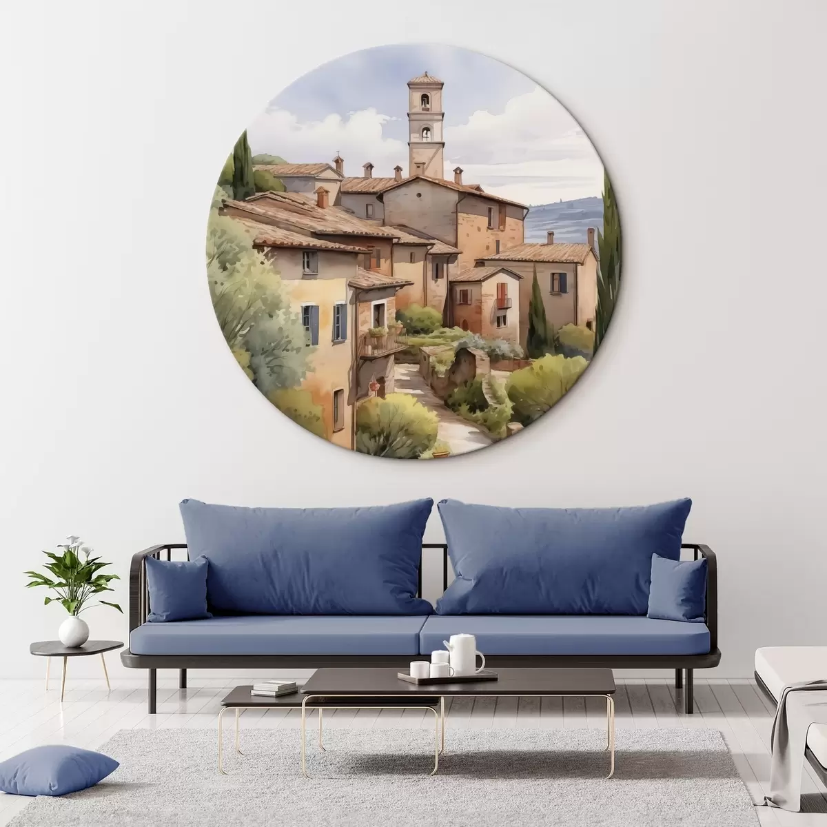 Runde Wandbilder Italienische Vorstadt Straße Nachahmung Aquarell r42135