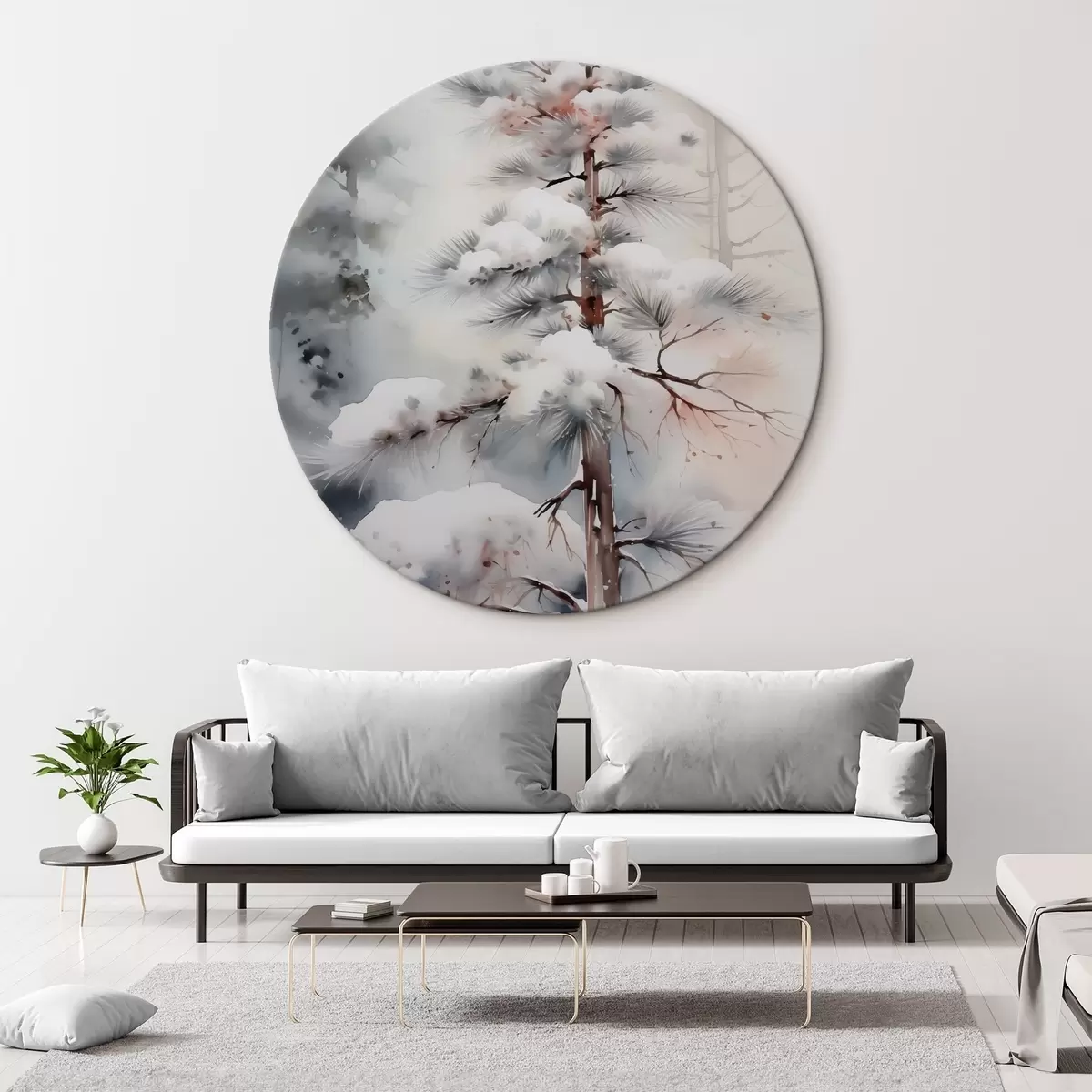 Runde Wandbilder Baum in verschneitem Wald Nachahmung von Aquarell r42139