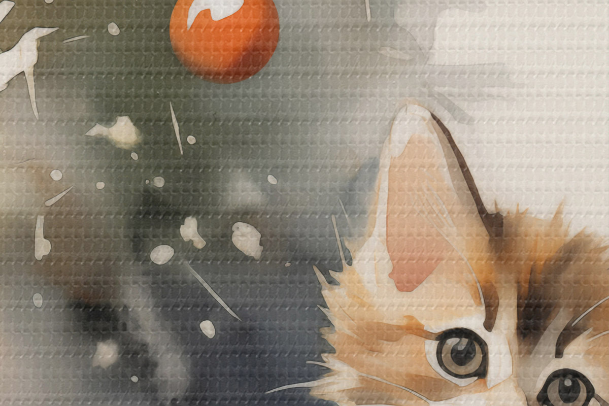 Runde Wandbilder Kätzchen in der Nähe des Weihnachtsbaums Nachahmung des nassen Aquarells Nr r42140