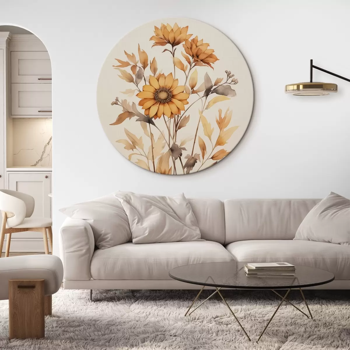 Runde Wandbilder Zweige mit gelben Blumen Nachahmung der Malerei Aquarell r42142