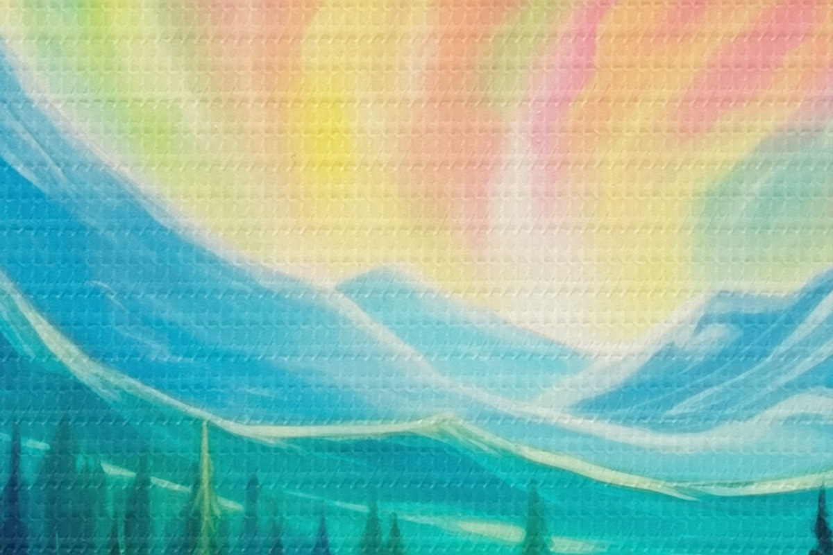 Um die Leinwand auf Keilrahmen zu spannen, ohne das Bild zu beschädigen, verwenden wir ein gespiegeltes Bild.