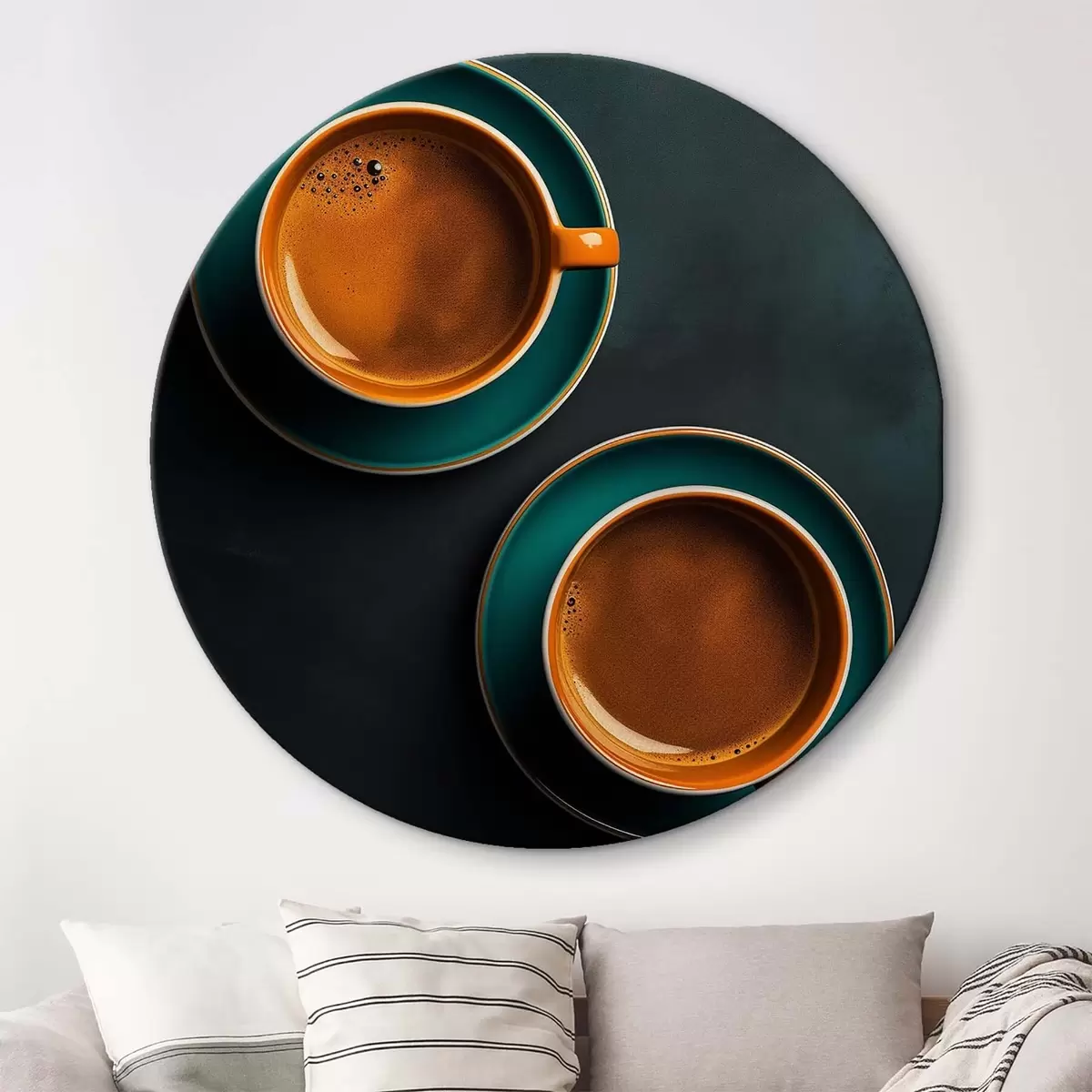 Runde Wandbilder Zwei Tassen Kaffee auf dunklem Hintergrund Nr r42190