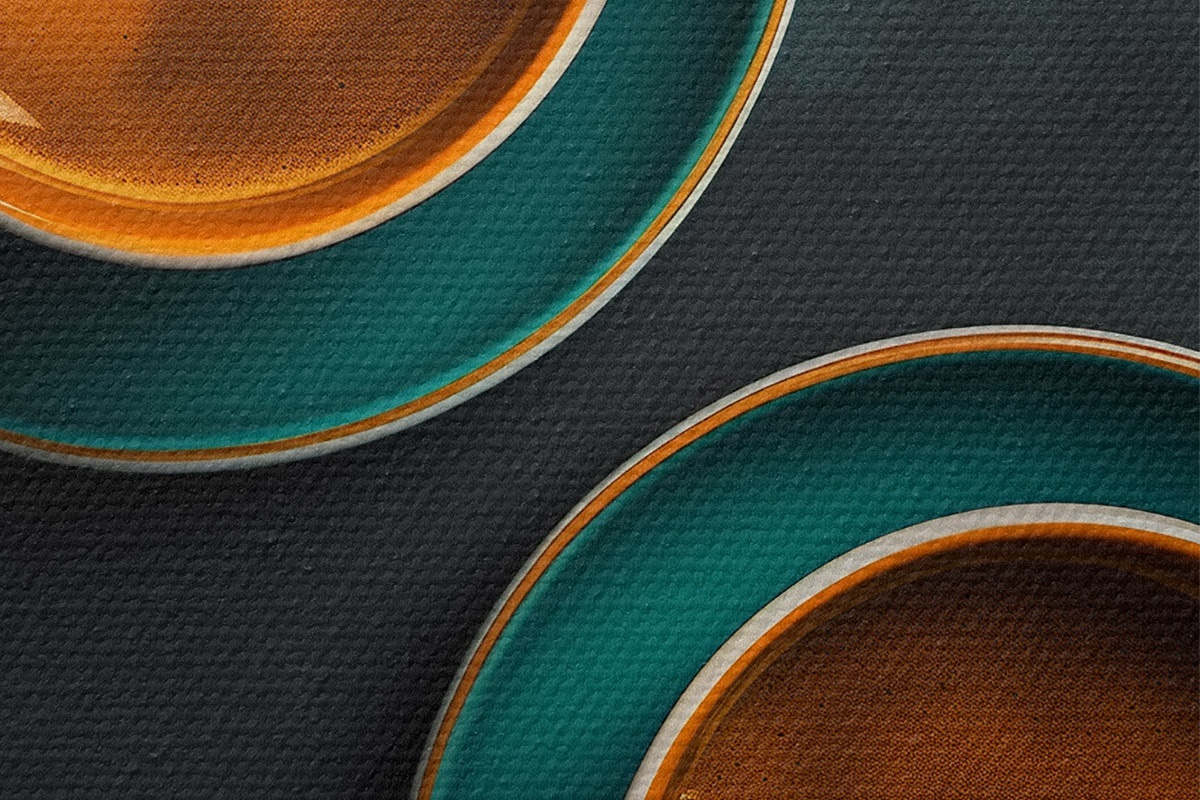 Runde Wandbilder Zwei Tassen Kaffee auf dunklem Hintergrund r42190