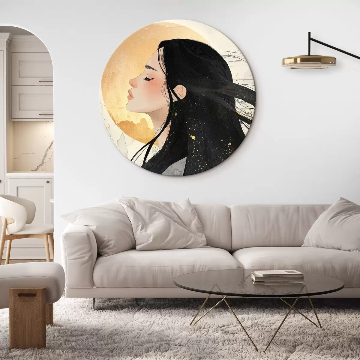 Runde Wandbilder Schönes Mädchen mit dunklem Haar, orientalischer Stil, Sonne r42194