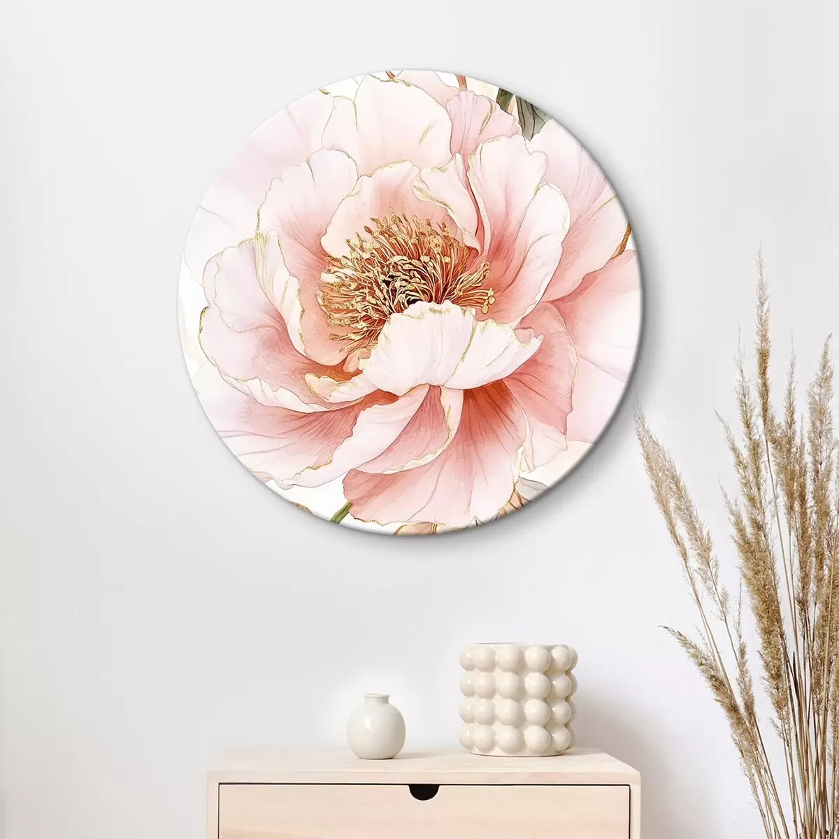 Runde Wandbilder Pfingstrosen im Aquarellstil, rosa Farben Nr r42200