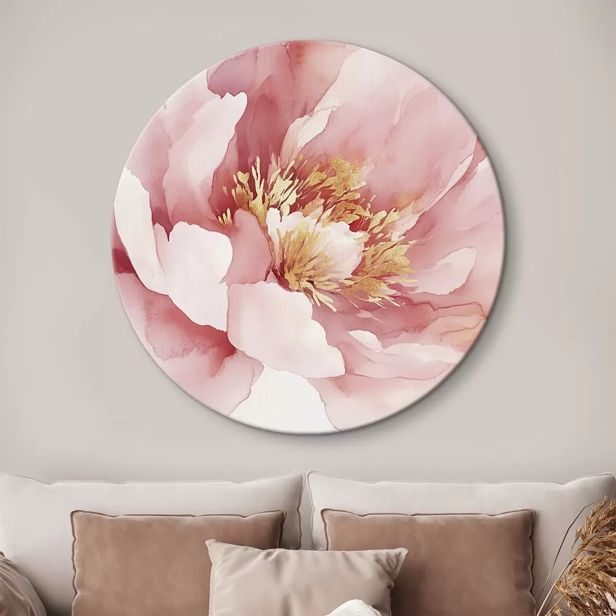 Runde Wandbilder Rosa Pfingstrose Blume, Aquarell-Stil r42203