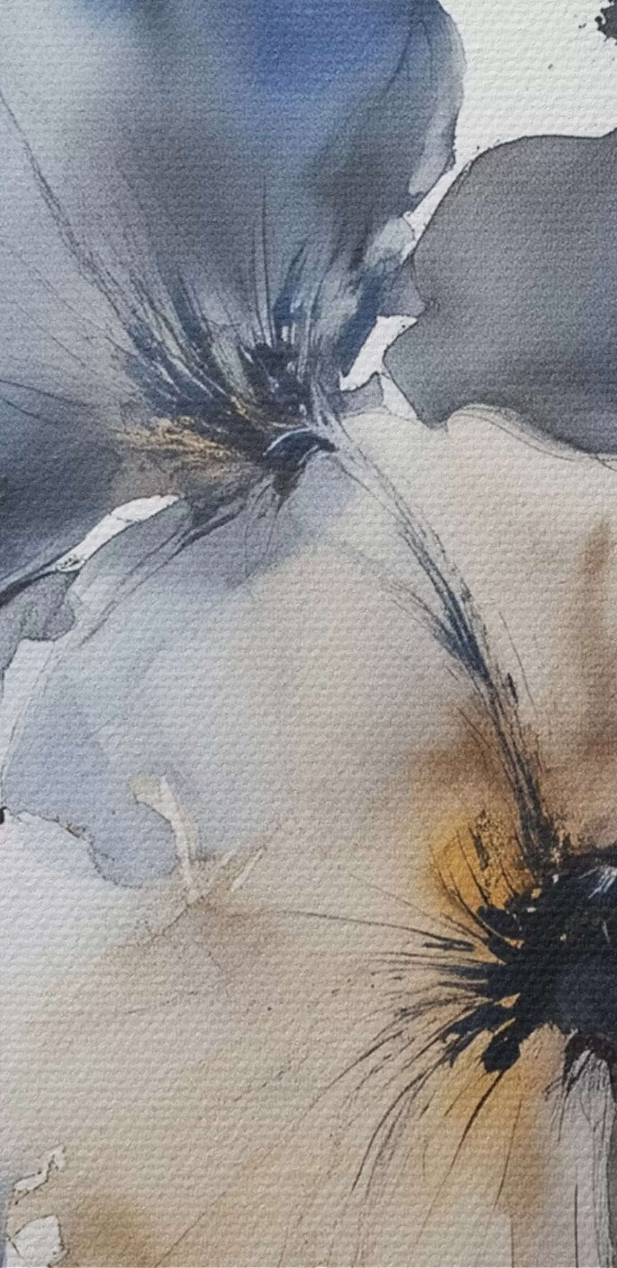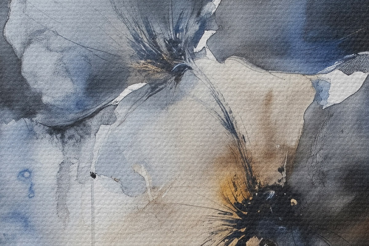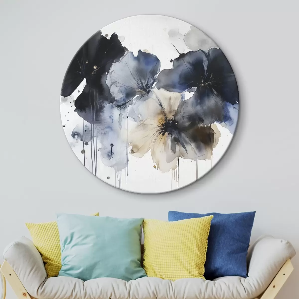 Runde Wandbilder Aquarellblumen, fließender Stil, blaue Farben r42207