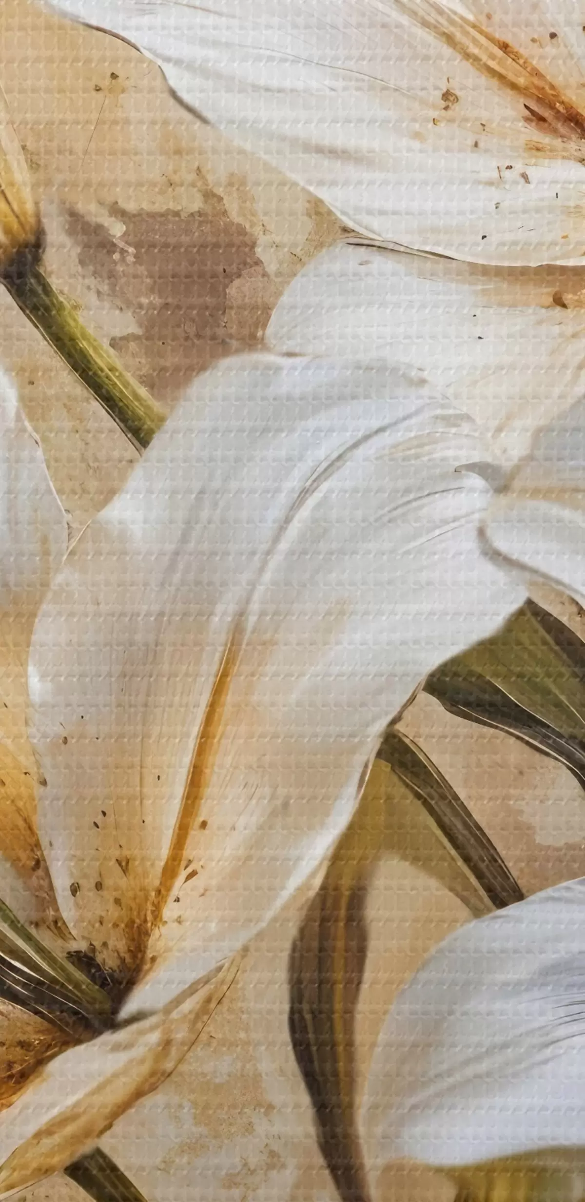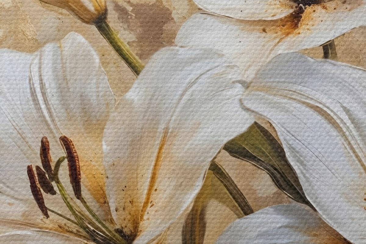 Runde Wandbilder Weiße Lilien mit gelber Mitte vor einem strukturierten beigen Hintergrund Nr r42216