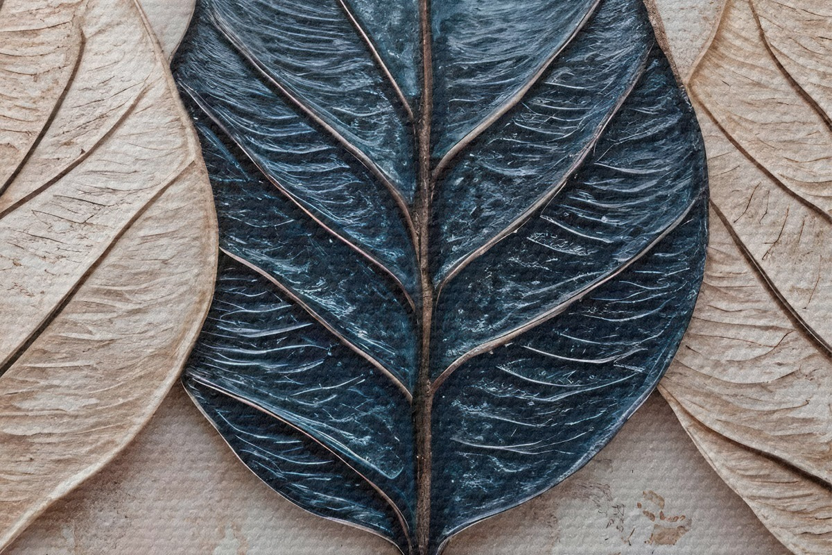 Runde Wandbilder Verschiedene abstrakte Herbstblätter in verschiedenen Braun-, Beige- und Blautönen, die in einer Reihe auf einem hellen Hintergrund angeordnet sind Nr r42217