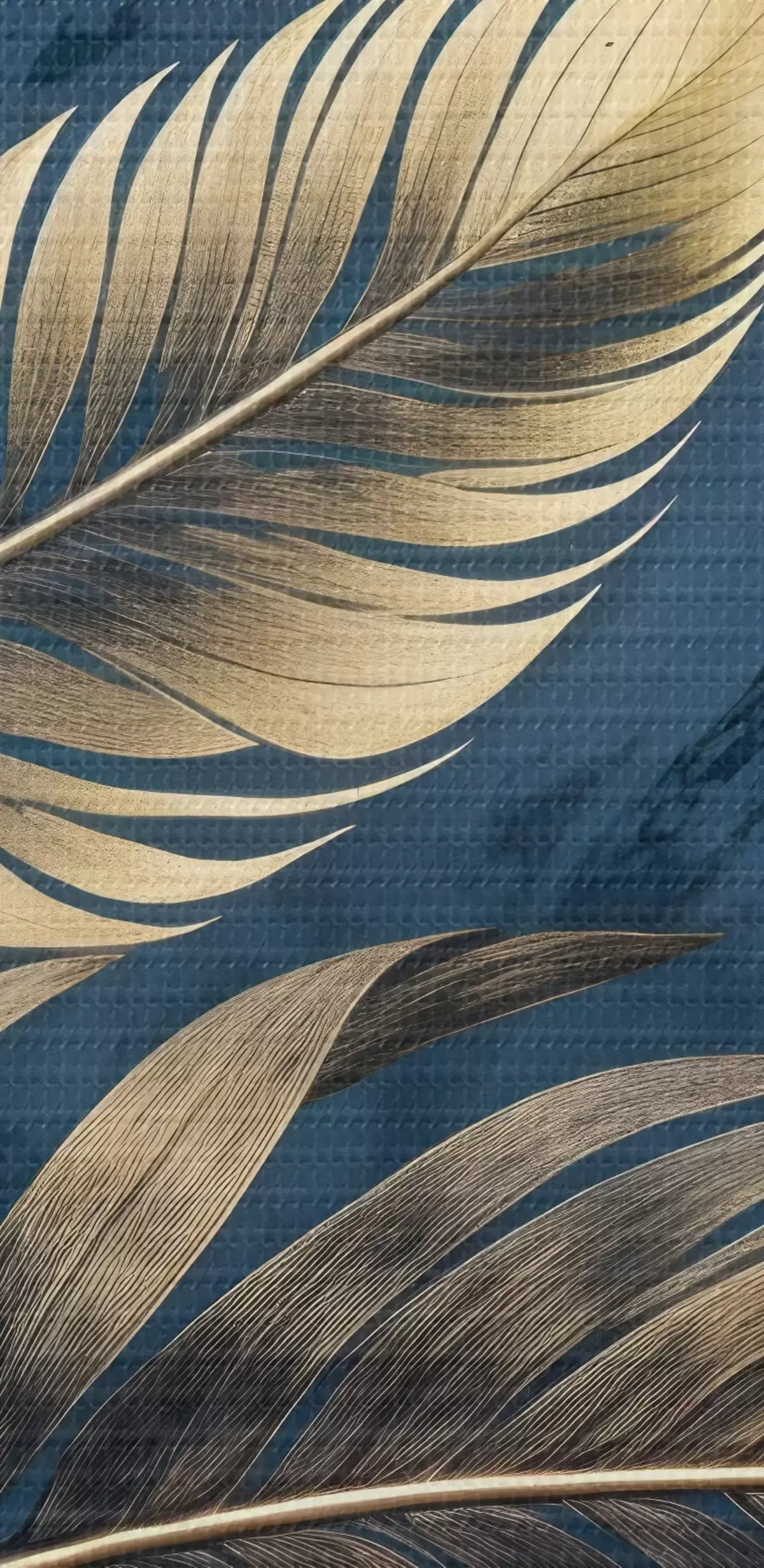 Runde Wandbilder Gelbe und beigefarbene abstrakte dekorative Federn, die auf einem dunkelblauen strukturierten Hintergrund schweben Nr r42218