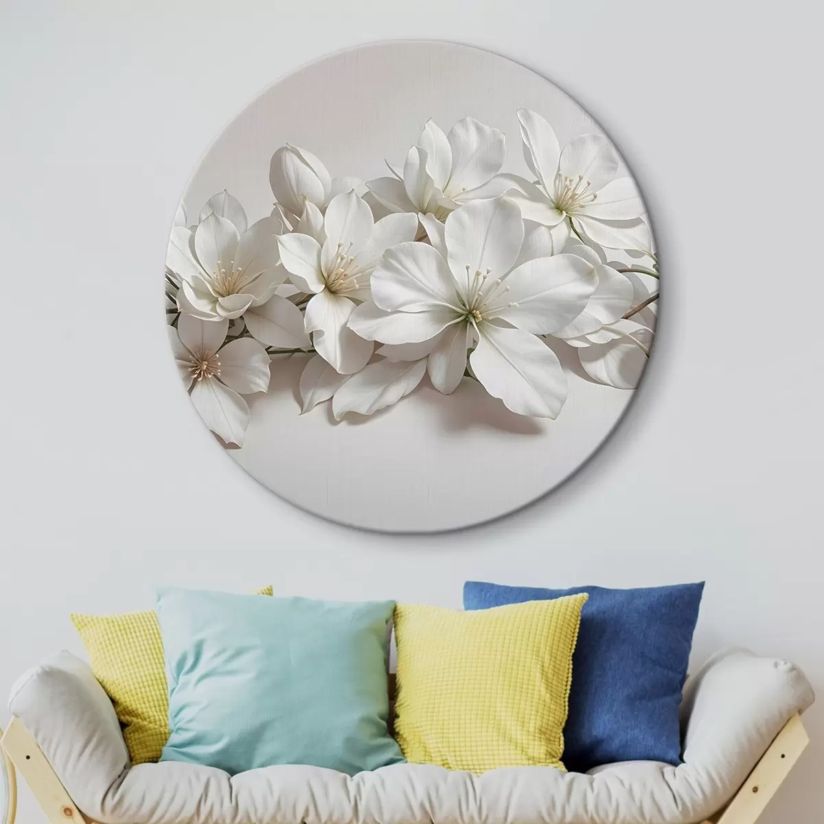 Runde Wandbilder Weiße zarte Magnolienblüten auf einem hellen Hintergrund Nr r42230