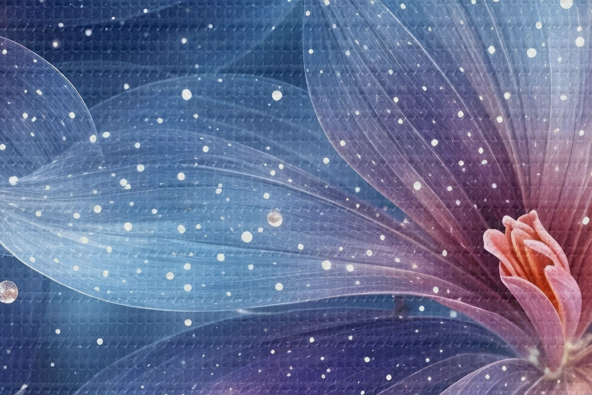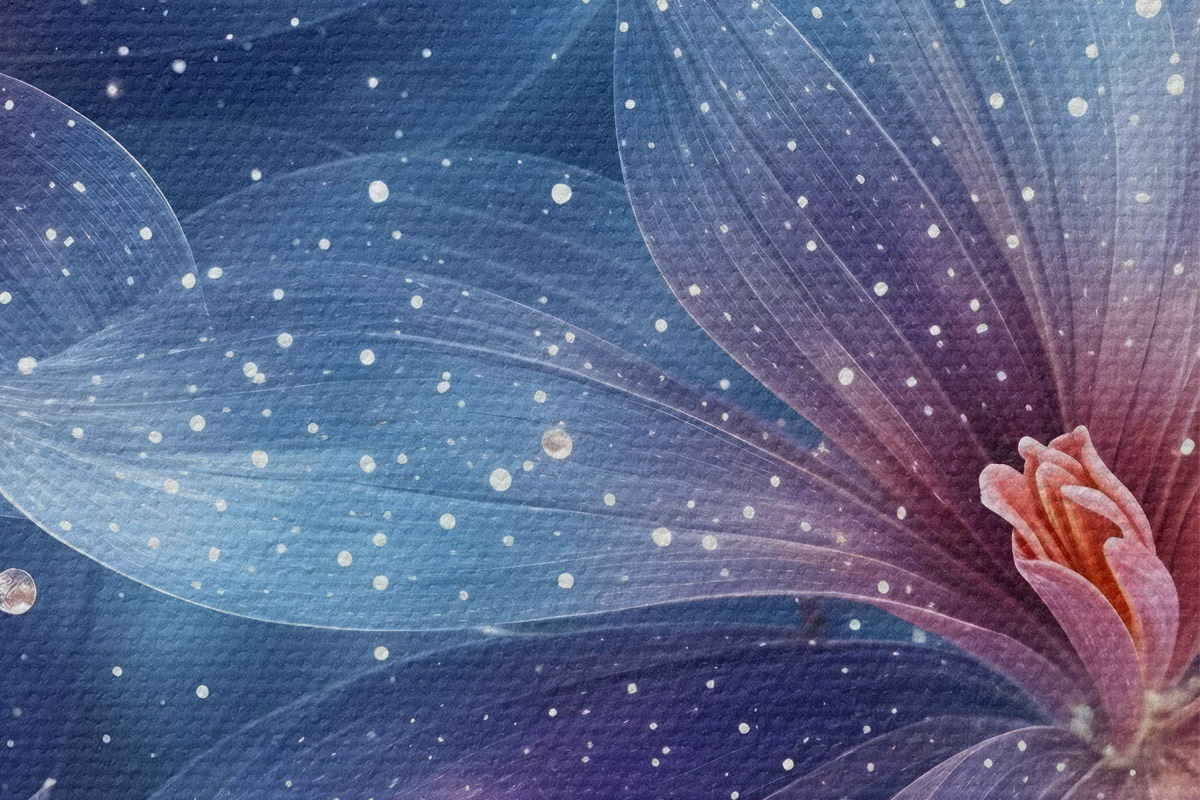 Runde Wandbilder Lebendige und ätherische Blumen mit zarten pastellfarbenen Blütenblättern vor einem verträumten, sternenklaren Hintergrund r42231